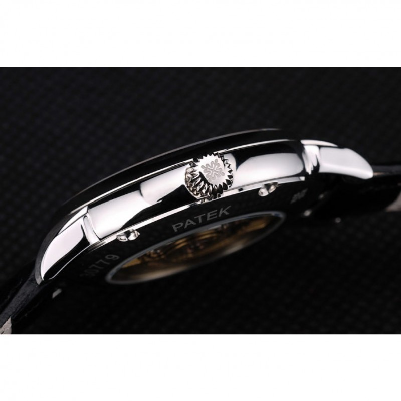 Torna: lucidato a scatto in acciaio inox retro con meccanica trasparenti rivelando center e incisioni Patek Philippe