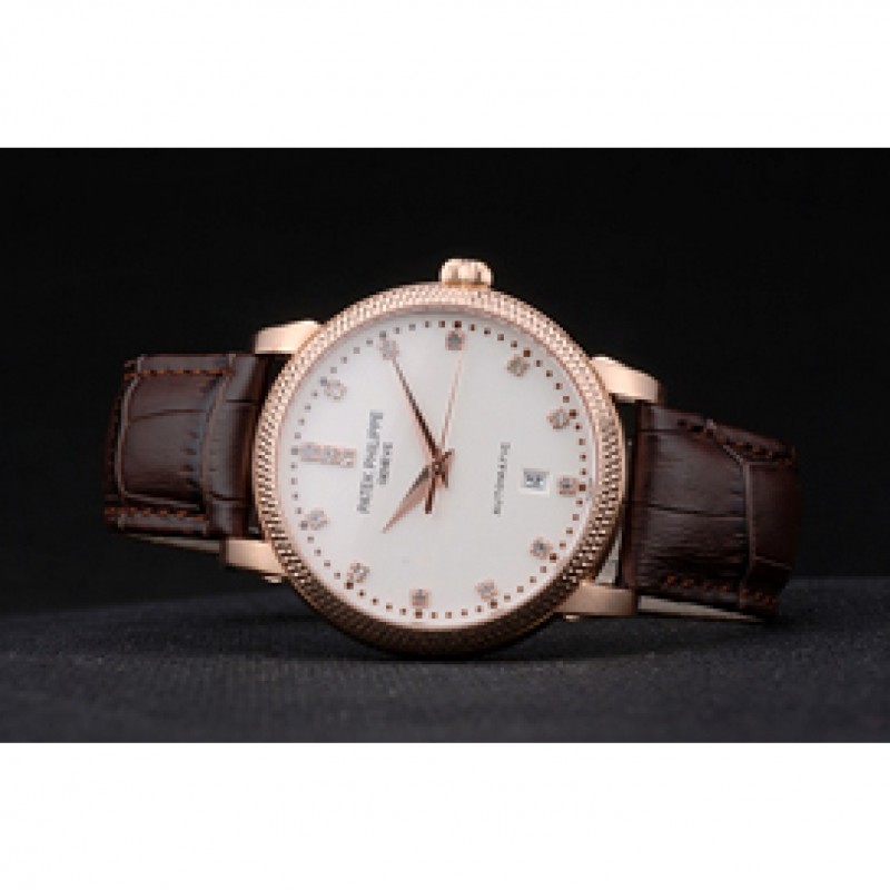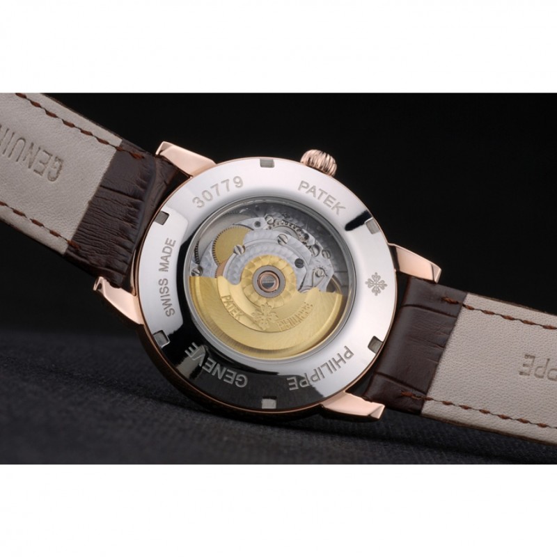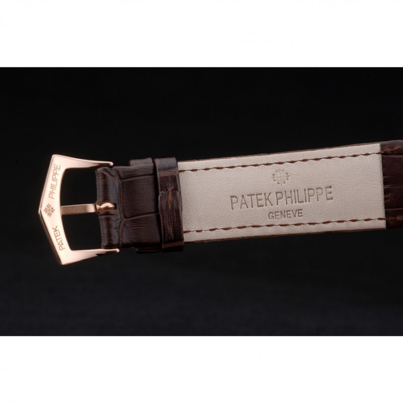 Bracciale: logo, il calore impresso cinturino in pelle di coccodrillo cioccolato Patek Philippe Geneve con Patek Philippe e il logo 18k inciso in oro rosa placcato catenaccio del gancio-fibbia