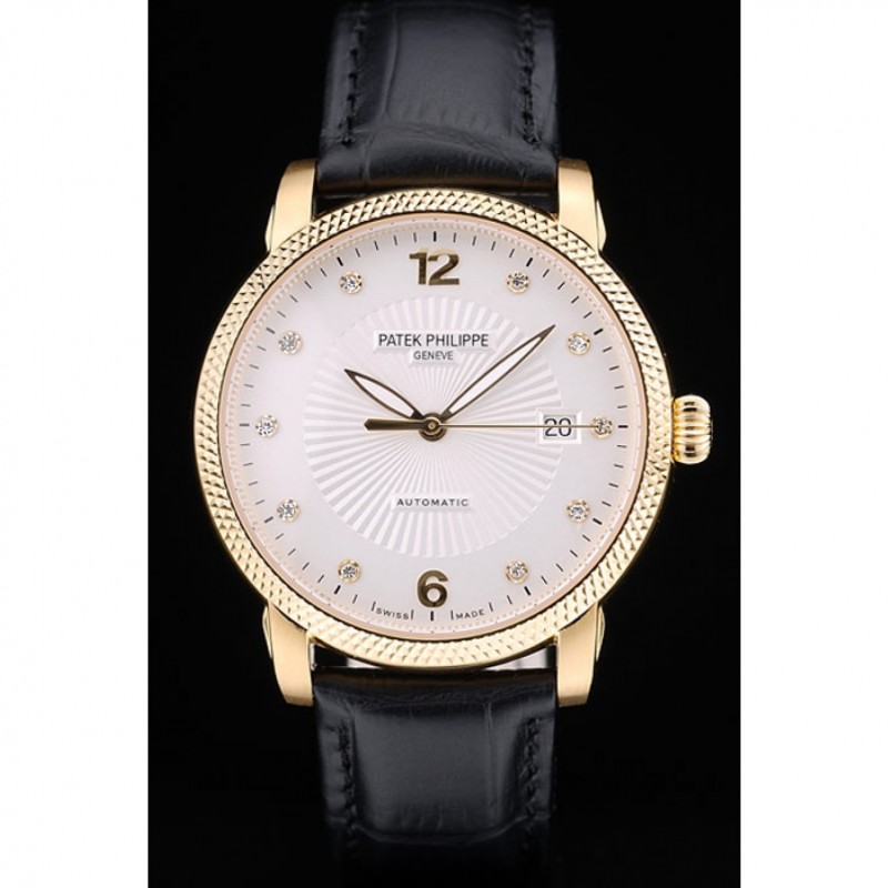Patek Philippe Calatrava svizzero costine lunetta quadrante bianco cinturino in pelle nera 7642
