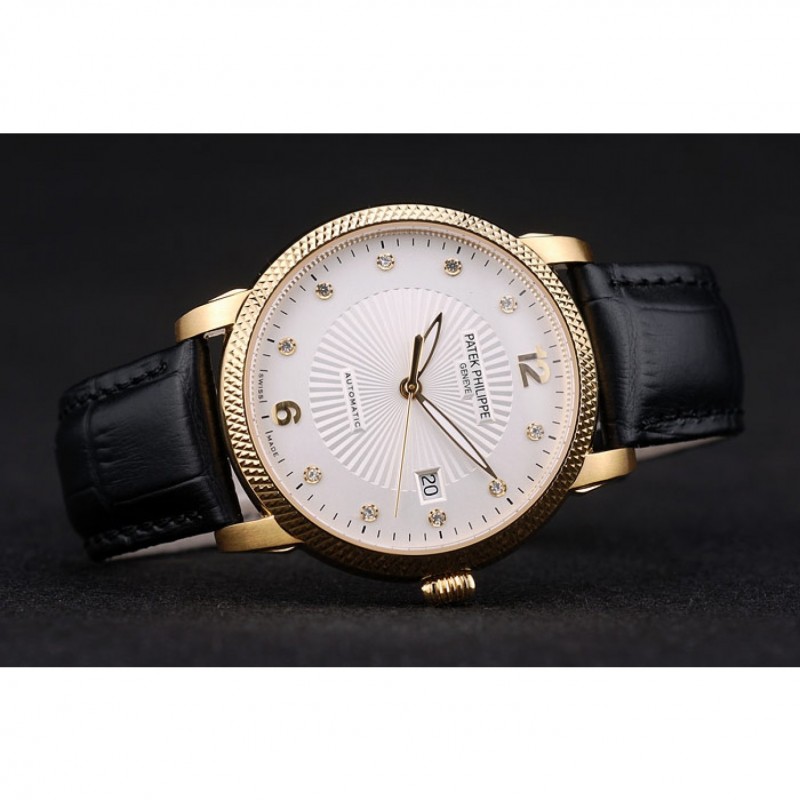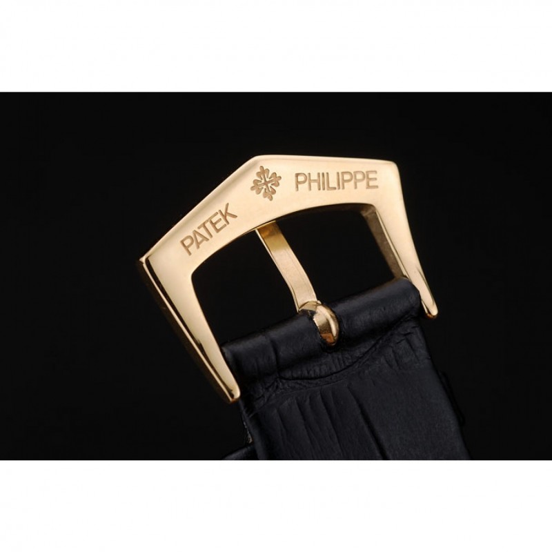 Bracciale: cinturino in pelle di coccodrillo nero logo, Patek Philippe Geneve calore in rilievo con Patek Philippe e logo inciso oro giallo 18k placcato catenaccio del gancio-fibbia
