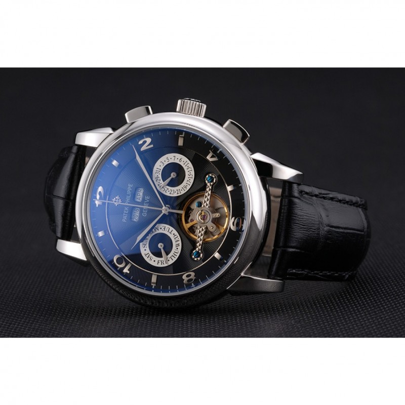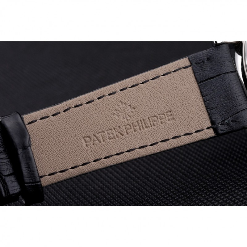 Bracciale: cinturino in pelle di coccodrillo nero calore Patek Philippe Geneve in rilievo con logo e Patek Philippe inscritta in acciaio inox gancio-fibbia chiusura lucidato