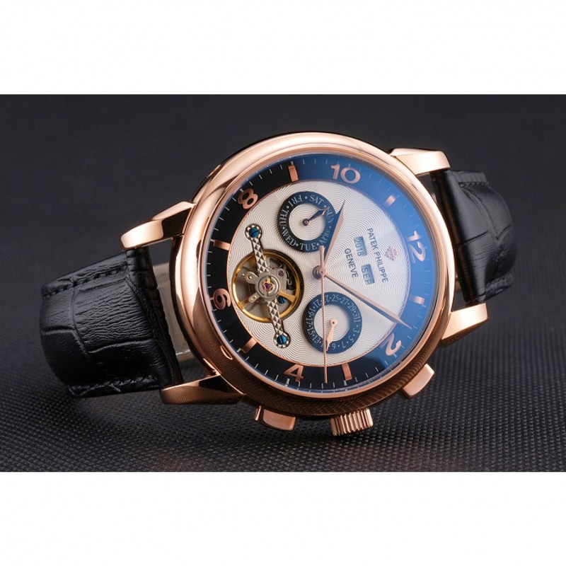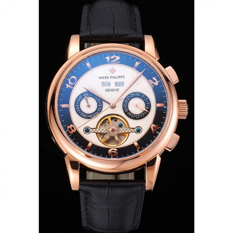braccialetto:Patek Philippe Ginevra calore goffrato con il marchio e Patek Philippe inscritto placcato 18k oro rosa gancio fibbia chiusura