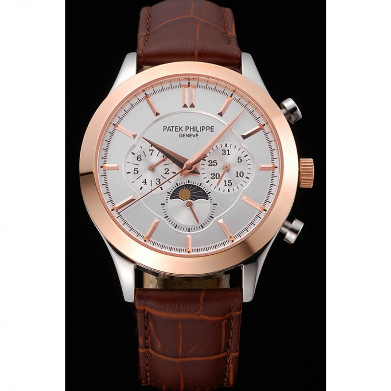 braccialetto: Patek Philippe Ginevra e logo calore impresso cinturino in pelle di coccodrillo marrone con 18k oro rosa gancio fibbia chiusura