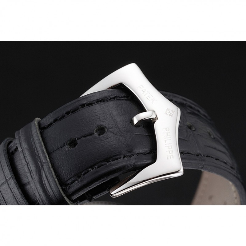 braccialetto: logo e calore Patek Philippe in rilievo cinturino in pelle di coccodrillo marrone con logo e Patek Philippe incise in acciaio inox catenaccio del gancio-fibbia lucida