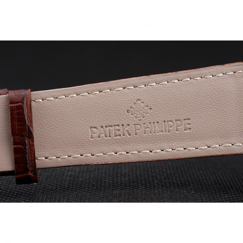 braccialetto: logo e calore Patek Philippe in rilievo cinturino in pelle di coccodrillo marrone con logo e Patek Philippe incise in acciaio inox catenaccio del gancio-fibbia lucida