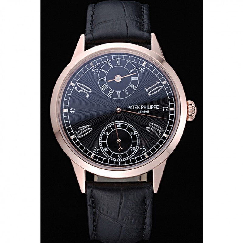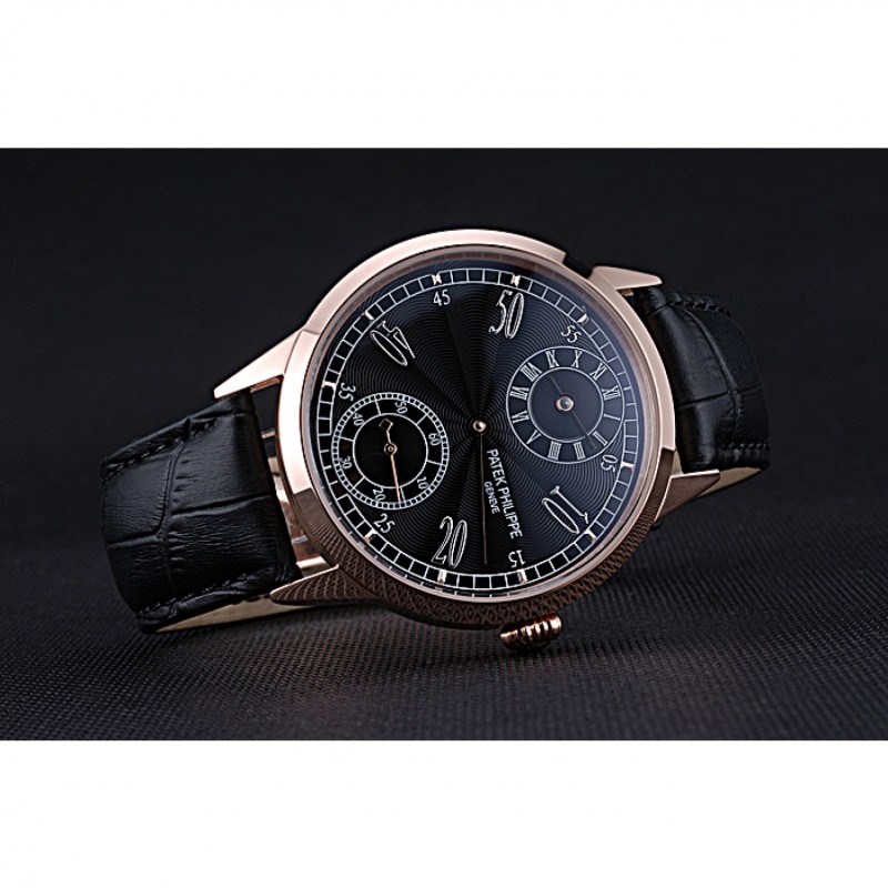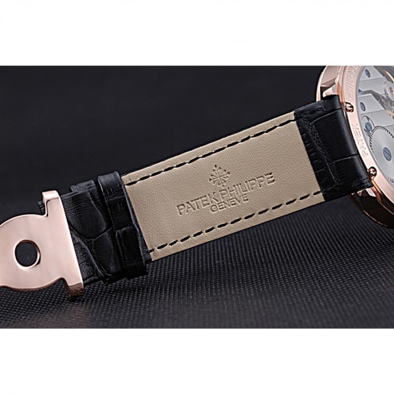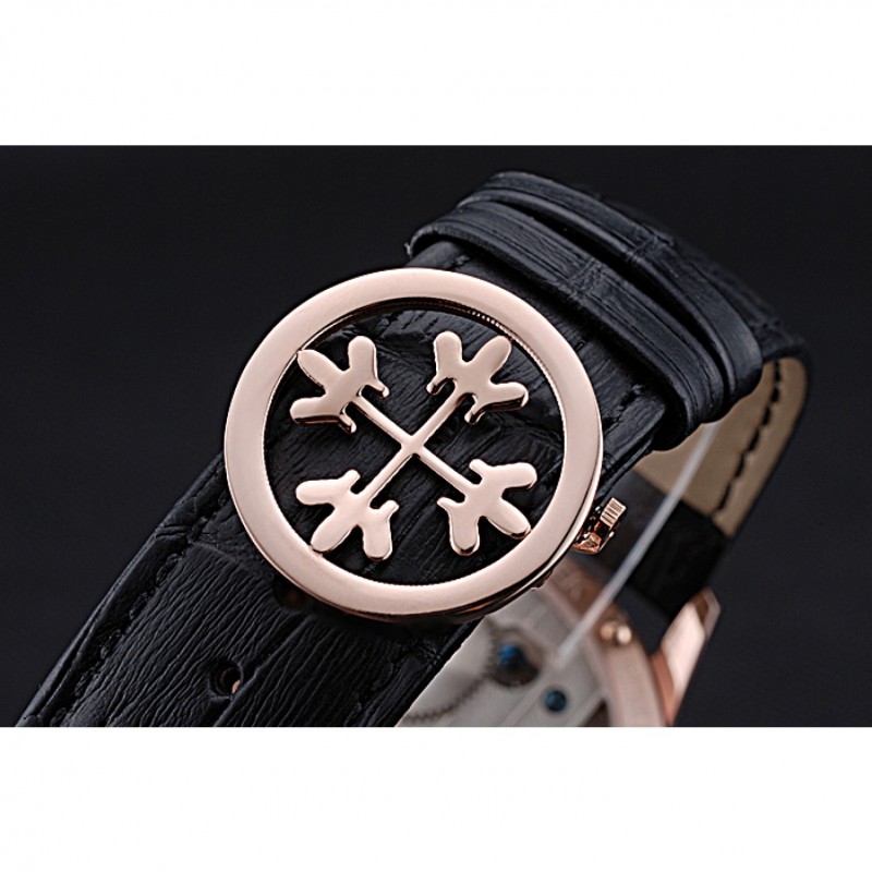 Bracciale: logo e calore in rilievo cinturino in pelle di coccodrillo nero Patek Philippe Geneve con 18k oro rosa placcato intaglio fibbia logo gancio