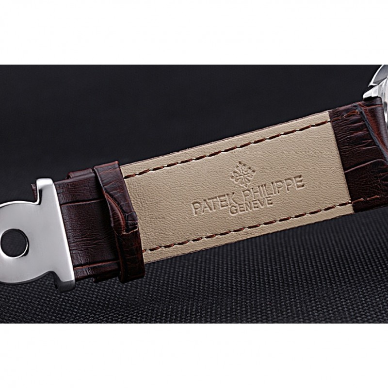 Bracciale: logo e Patek Philippe Geneve calore impresso cinturino in pelle di coccodrillo marrone con intaglio acciaio inox fibbia logo gancio lucido