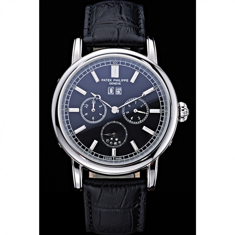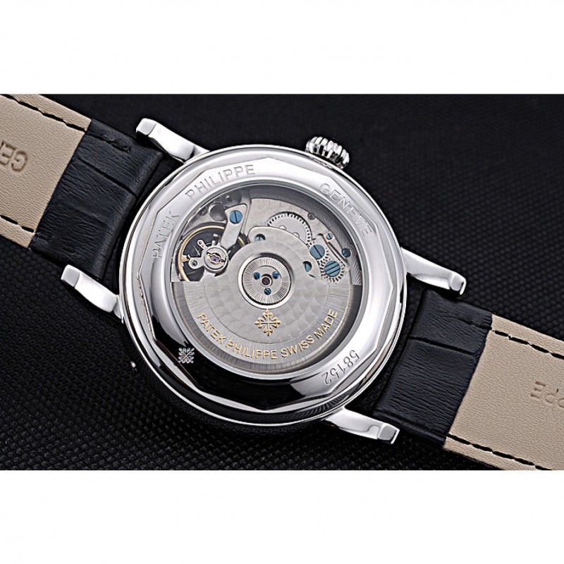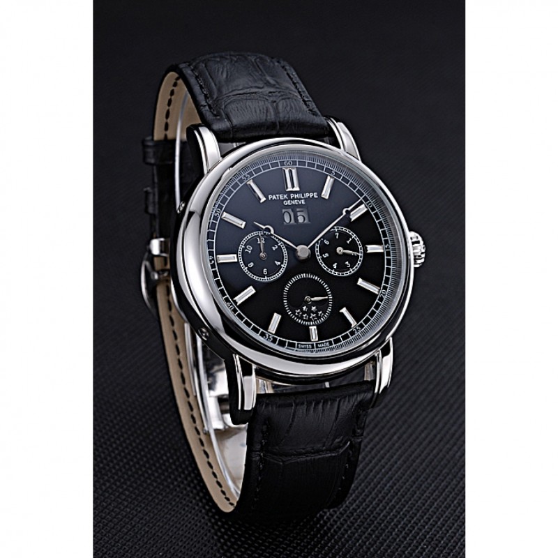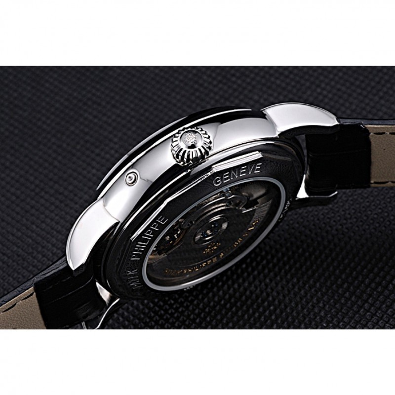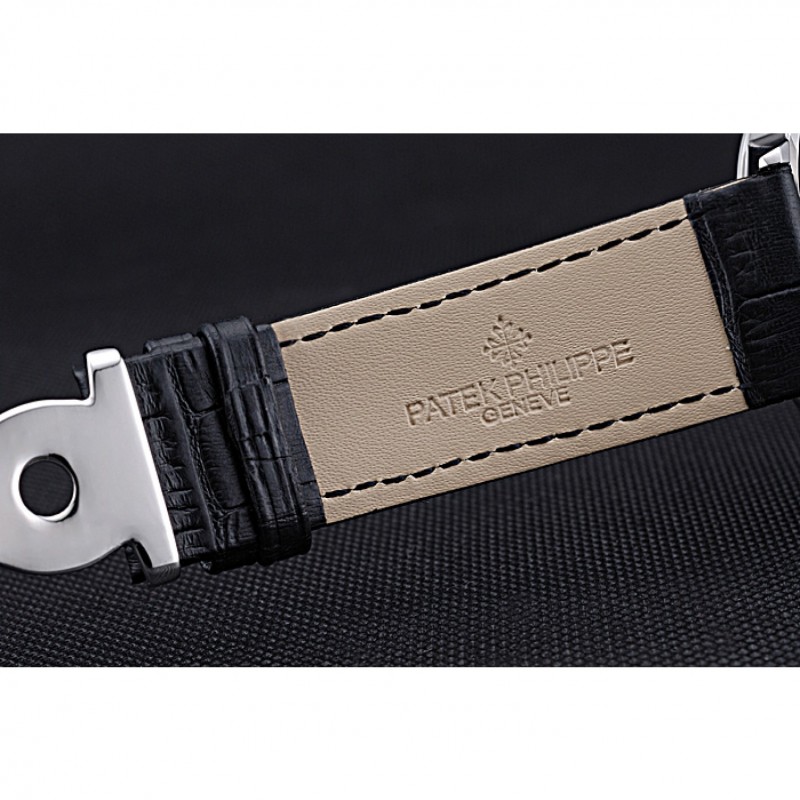 Bracciale: logo e Patek Philippe Geneve calore impresso cinturino in pelle di coccodrillo nera con intaglio acciaio inox fibbia logo gancio lucido