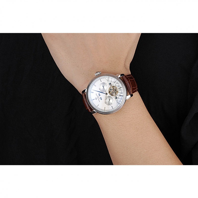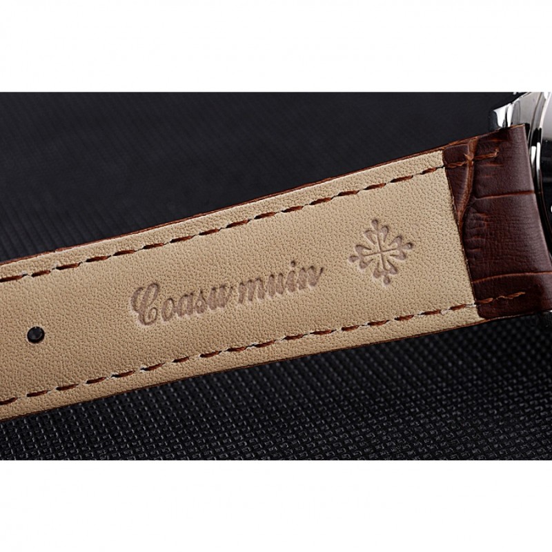 Bracciale: Patek Philippe Geneve e calore logo in rilievo in pelle di coccodrillo marrone cinturino con acciaio inossidabile chiusura a gancio fibbia lucida