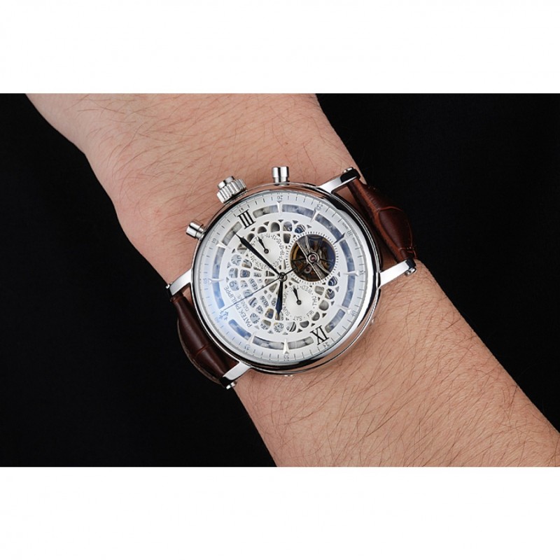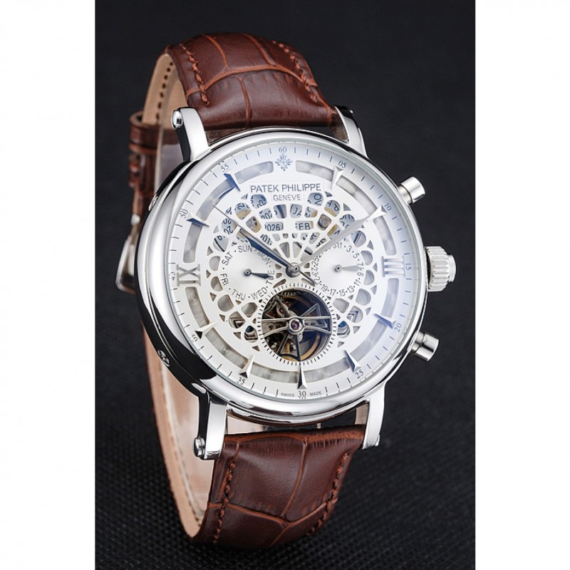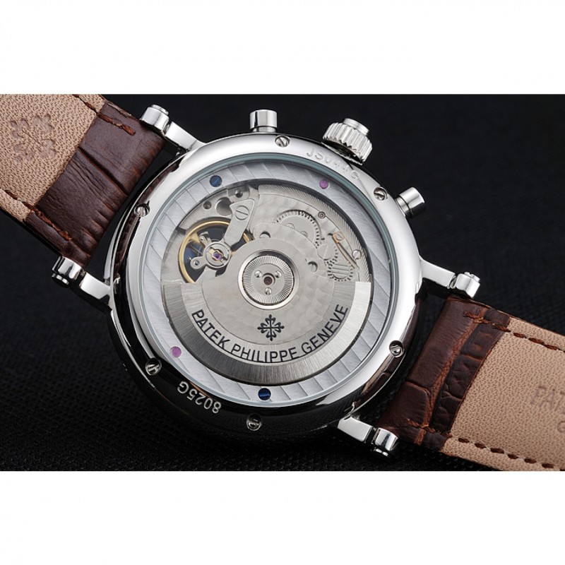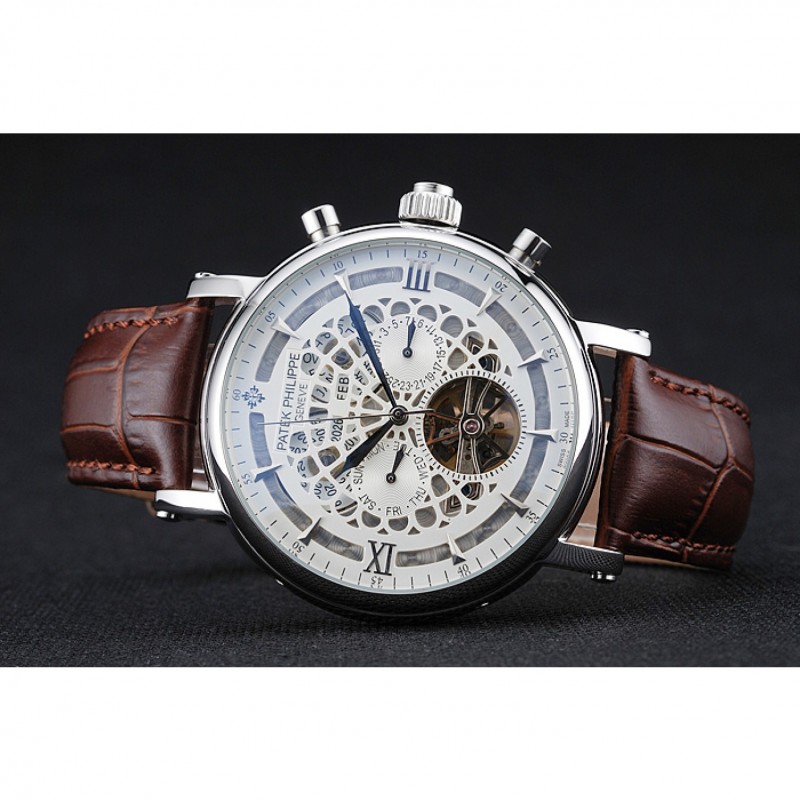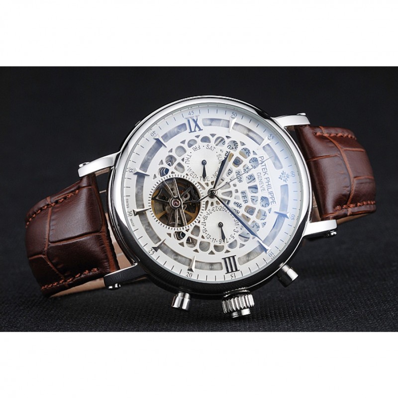 Patek Philippe Grand Complicazioni Calendario annuale quadrante bianco il braccialetto di cuoio di caso Marrone Argento 1454233