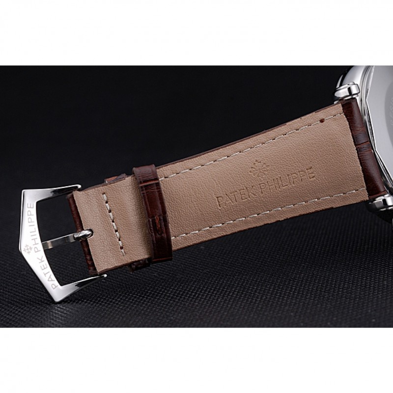 Bracciale: Logo e calore in rilievo cinturino in pelle di coccodrillo marrone Patek Philippe Geneve con acciaio inossidabile chiusura a gancio fibbia lucida