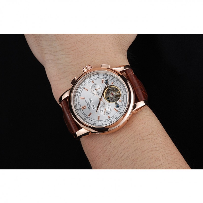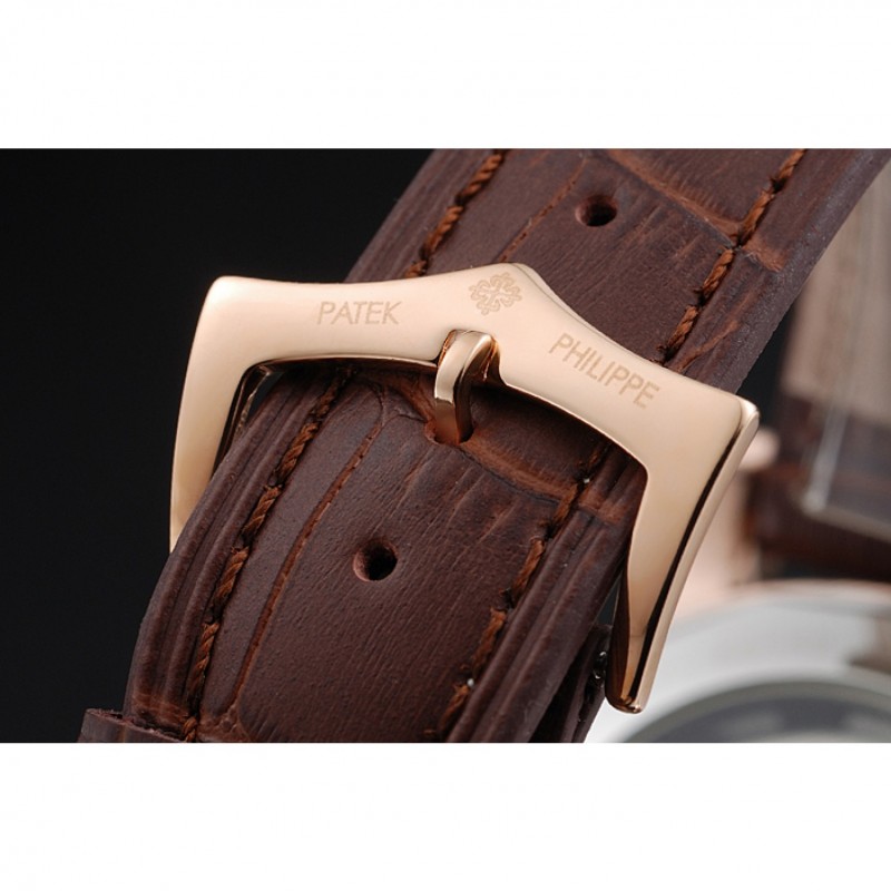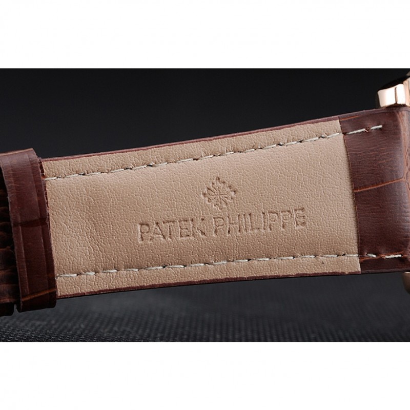 braccialetto: logo e calore impresso cinturino marrone in pelle di coccodrillo Patek Philippe Ginevra con 18k oro rosa placcato gancio fibbia chiusura