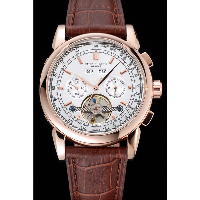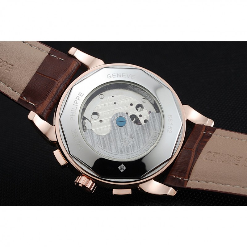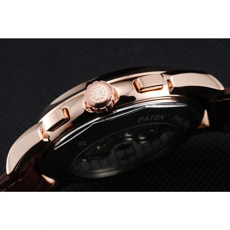 Crown: 18k Patek Philippe logo inciso oro rosa placcato corona intaglio con un pulsante rettangolare corona su entrambi i lati di esso