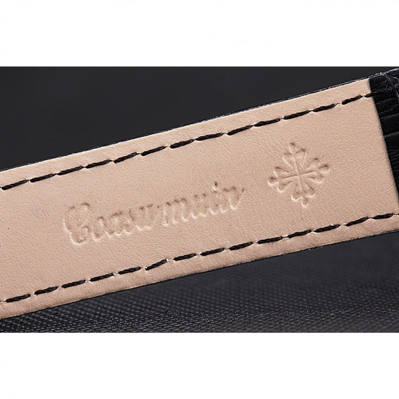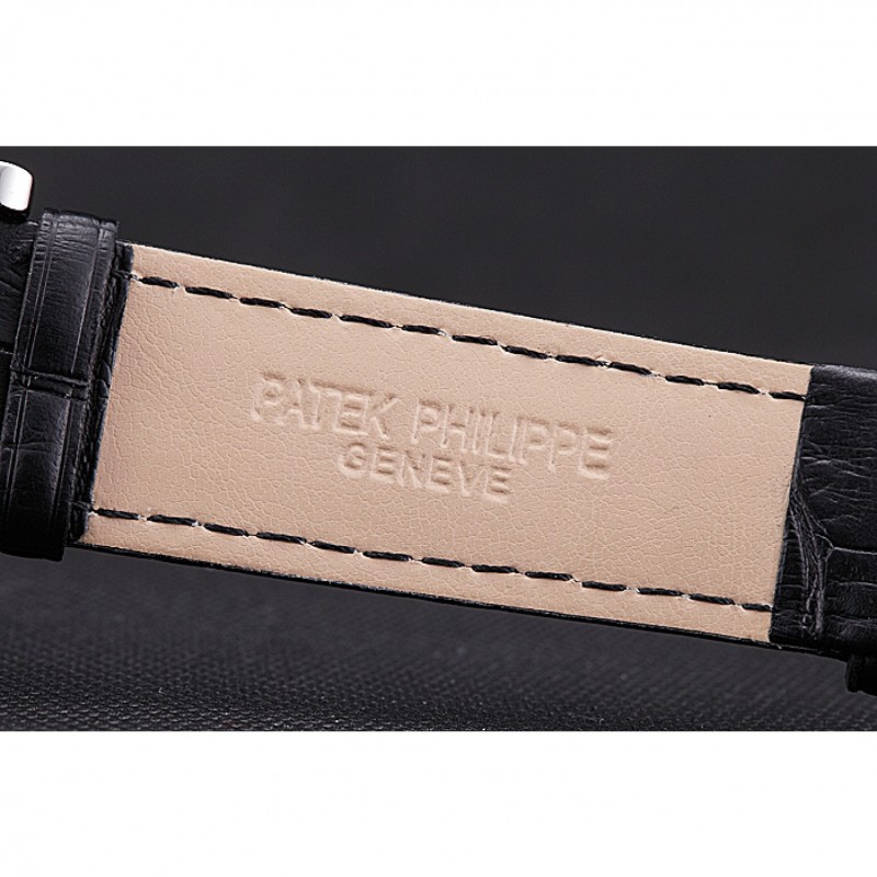 braccialetto: cinturino in pelle nera di coccodrillo con il calore in rilievo Patek Philippe timbro e l’acciaio inossidabile chiusura a gancio fibbia lucidato con Patek Philippe incisione