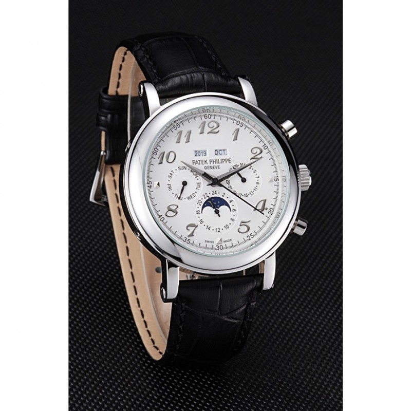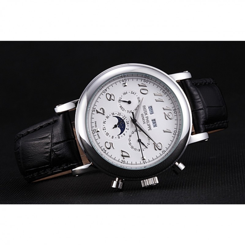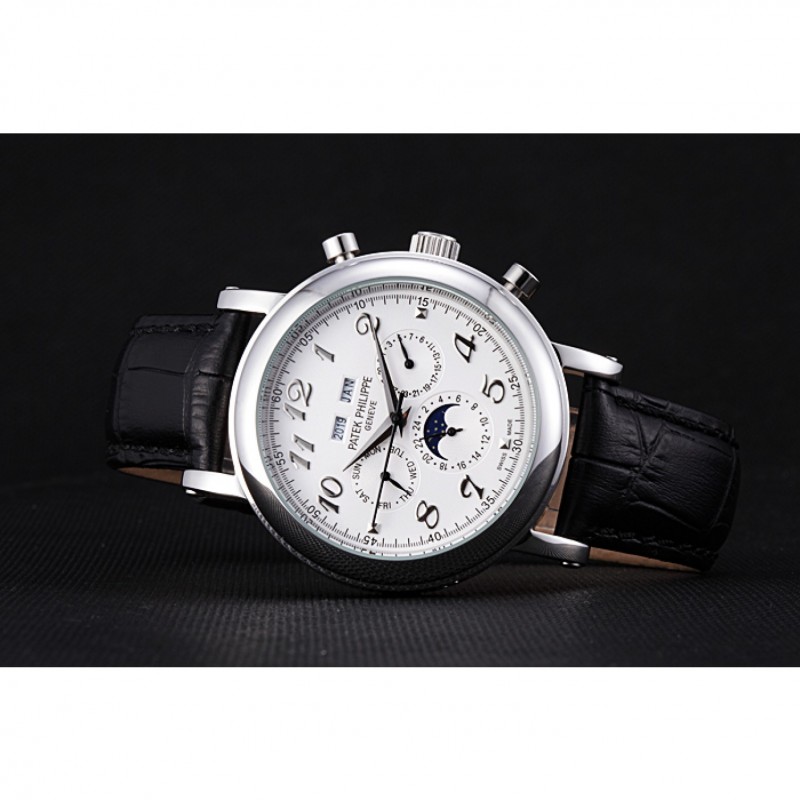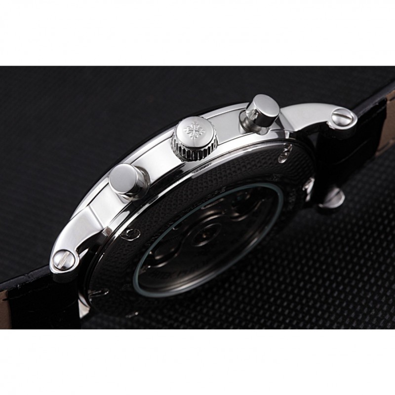 Crown: lucido corona intaglio in acciaio inossidabile con Patek Philippe logo e pulsante rettangolare corone su entrambi i lati di esso
