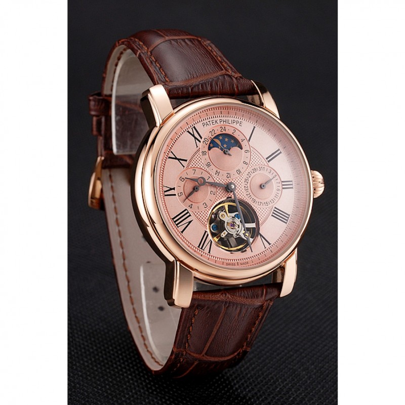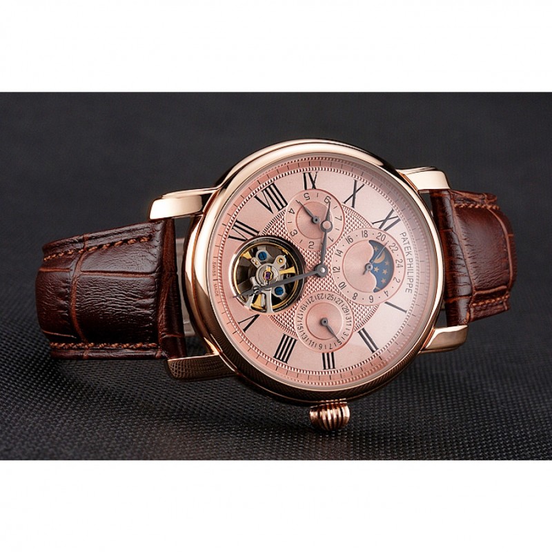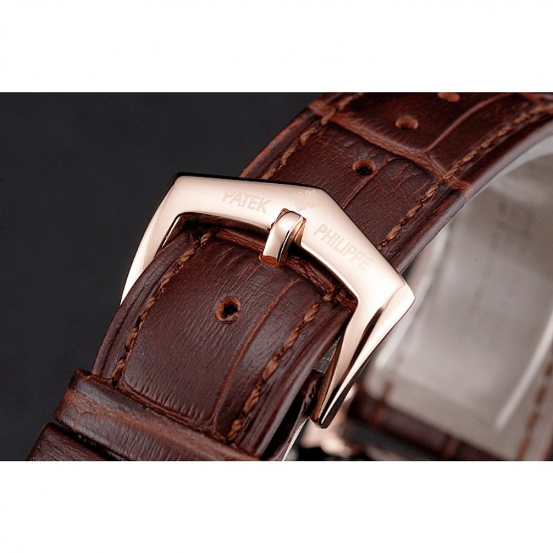 braccialetto: logo e calore Patek Philippe in rilievo cinturino in pelle di coccodrillo marrone con logo e Patek Philippe incisi 18k oro rosa placcato hook-fibbia chiusura