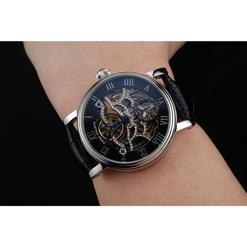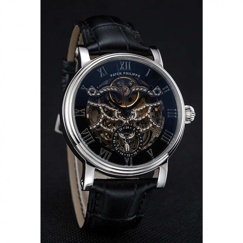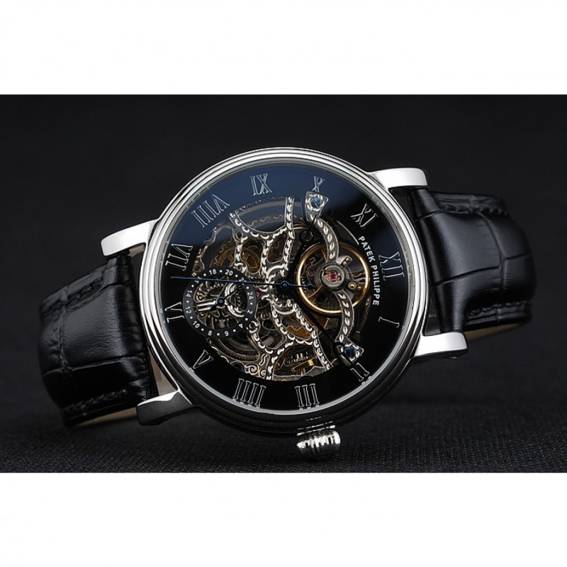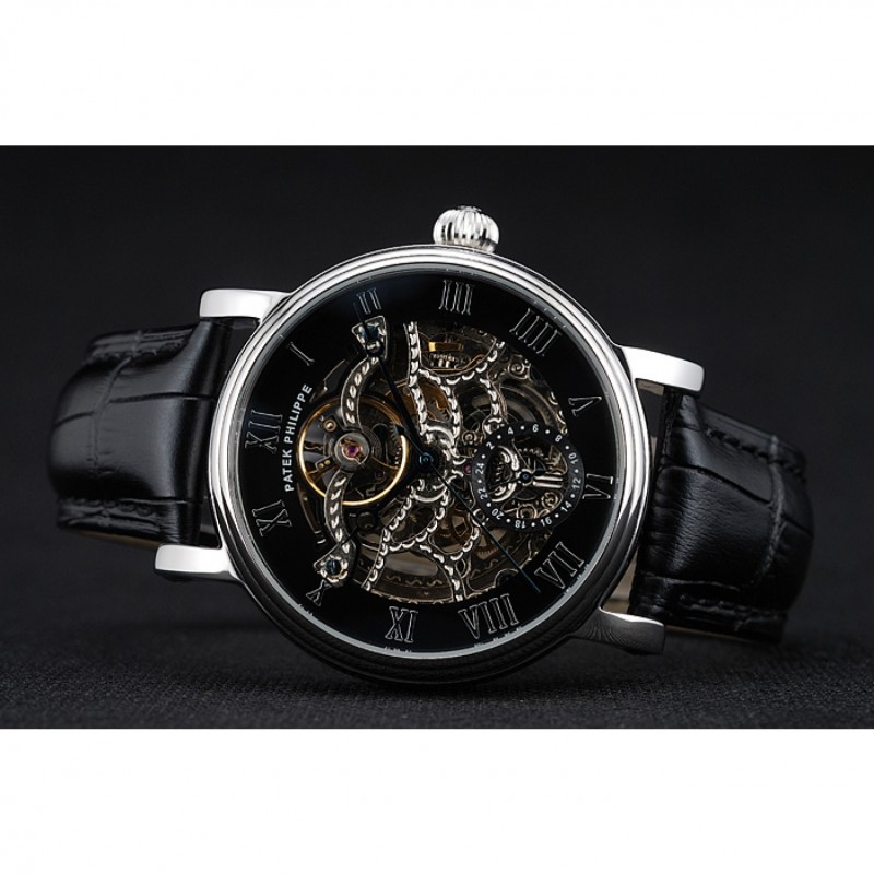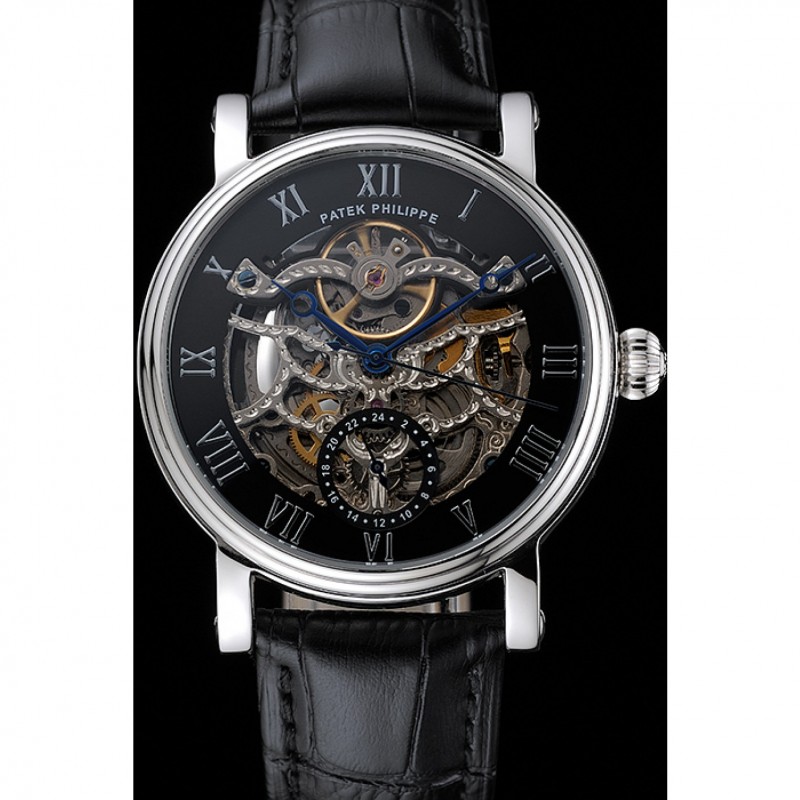 Patek Philippe Grand Complicazioni nero Scheletro Quadrante Cassa in acciaio cinturino in pelle nera 1453812