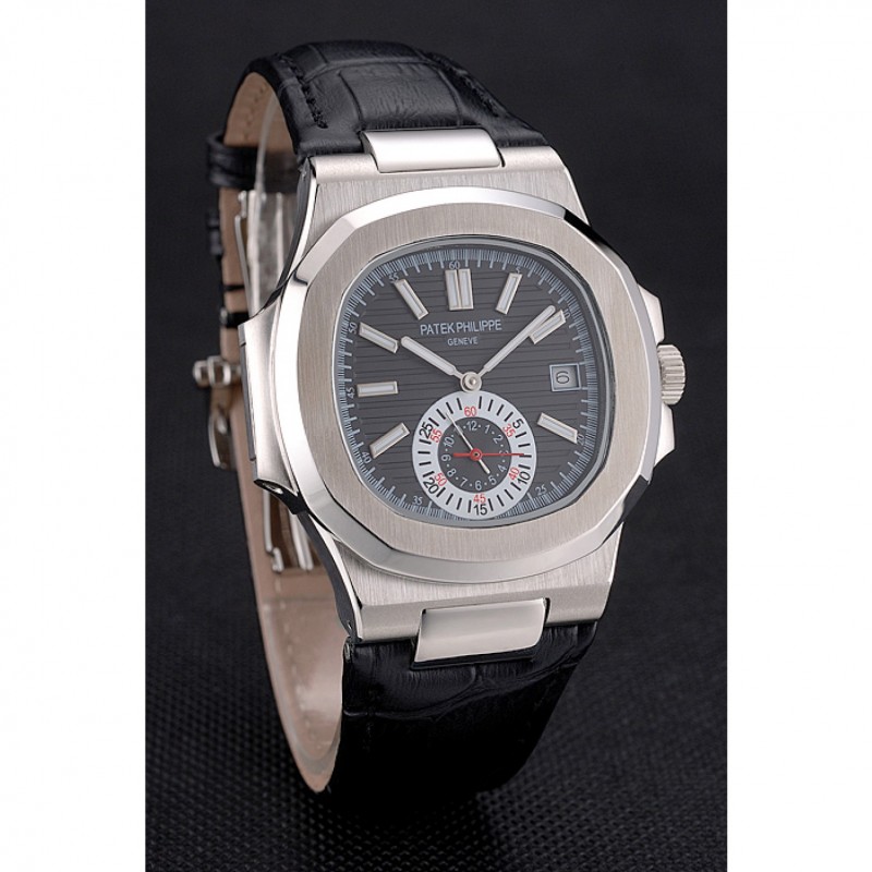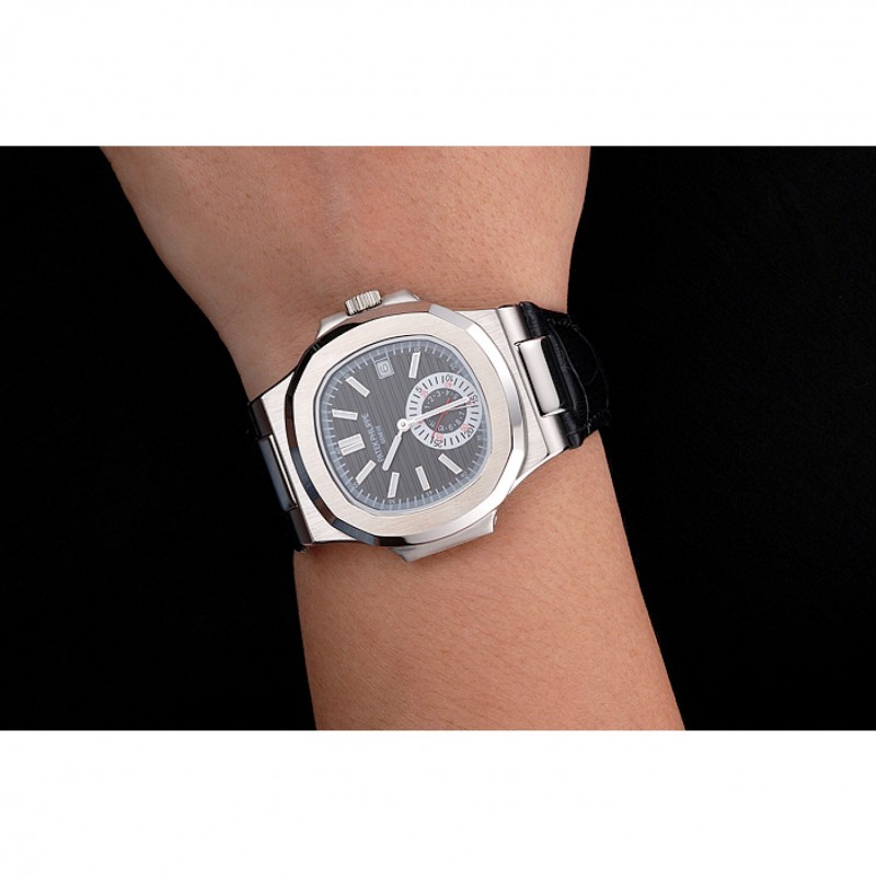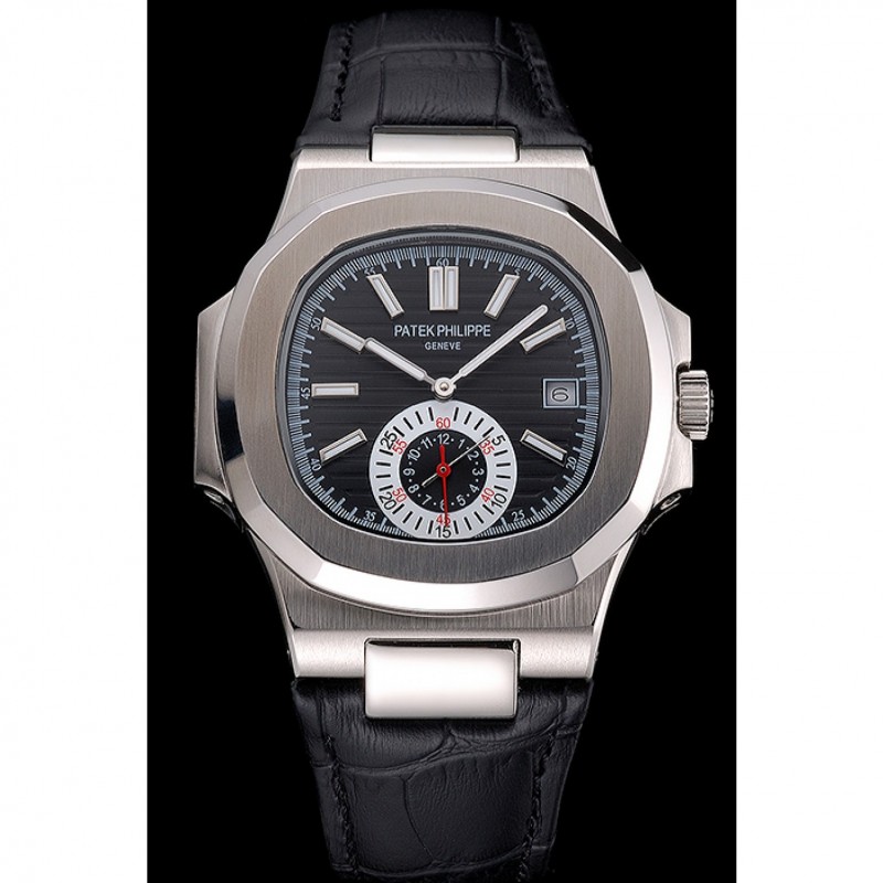 Patek Philippe Nautilus quadrante nero Cassa in acciaio nero cinturino in pelle