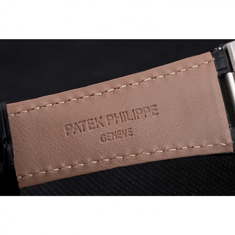 Bracciale: calore Patek Philippe Geneve impresso cinturino in pelle di coccodrillo nera con Nautilus inciso fibbia chiusura in acciaio inox lucidato