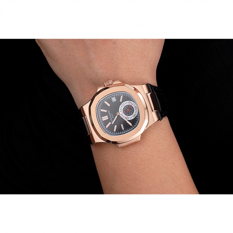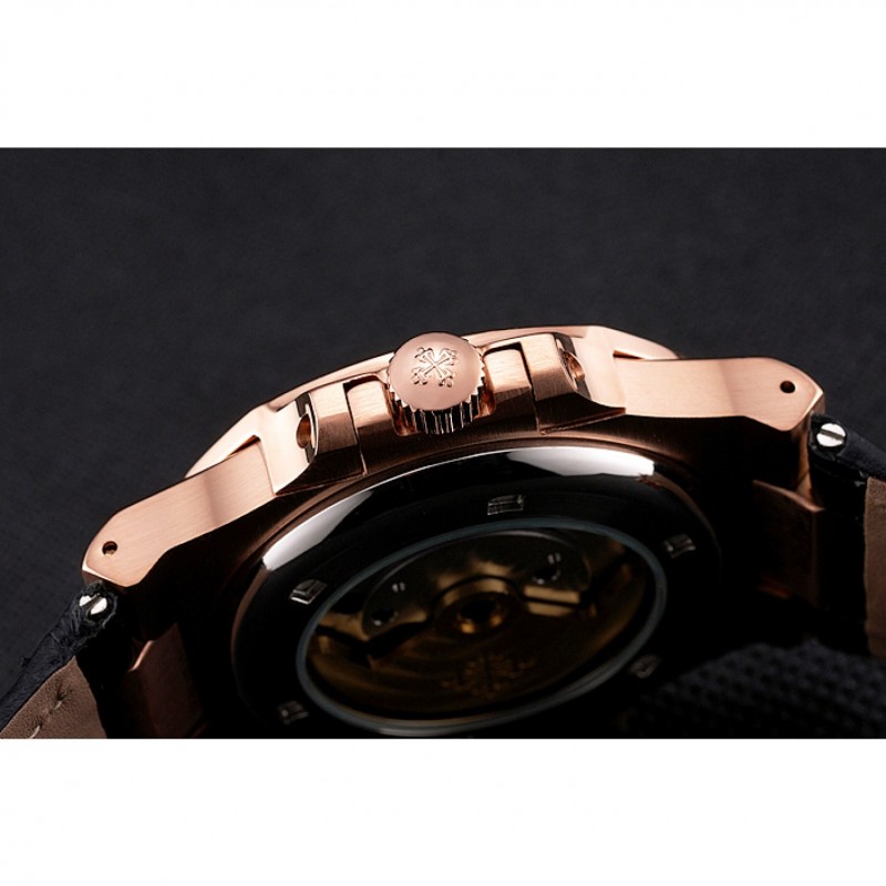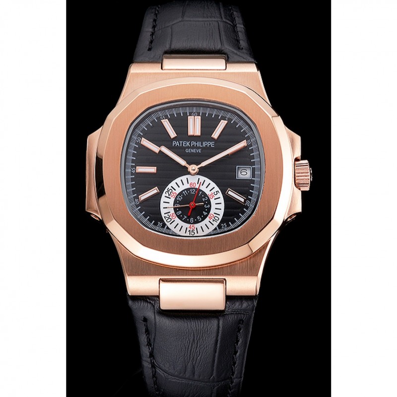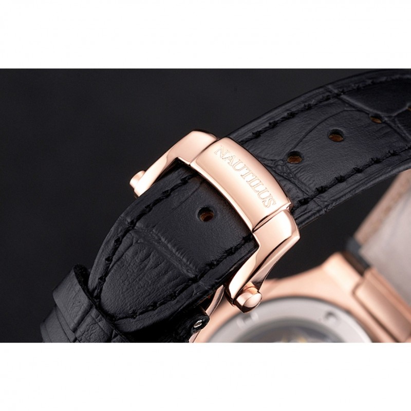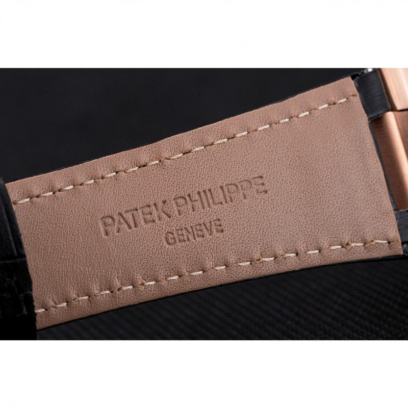 Bracciale: Patek Philippe Geneve calore impresso cinturino in pelle di coccodrillo nera con Nautilus inciso fibbia in acciaio inox lucidato