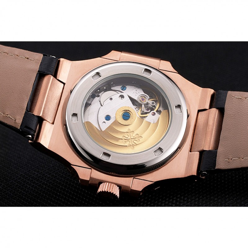 Torna: in acciaio inox lucido snap-in di nuovo con la meccanica-rivelatori trasparente centro e Patek Philippe incisione logo