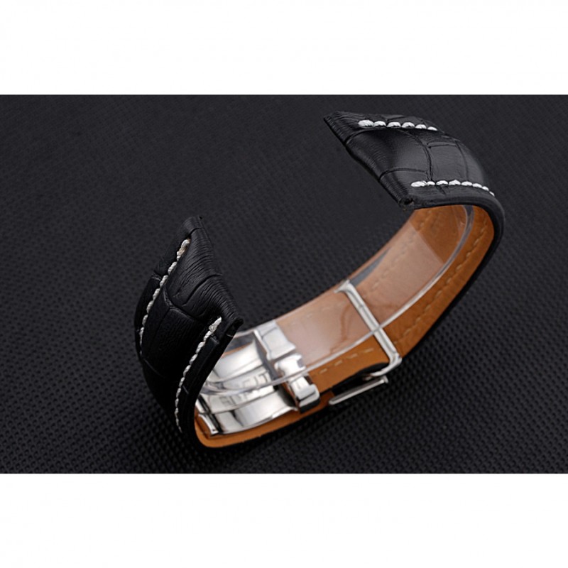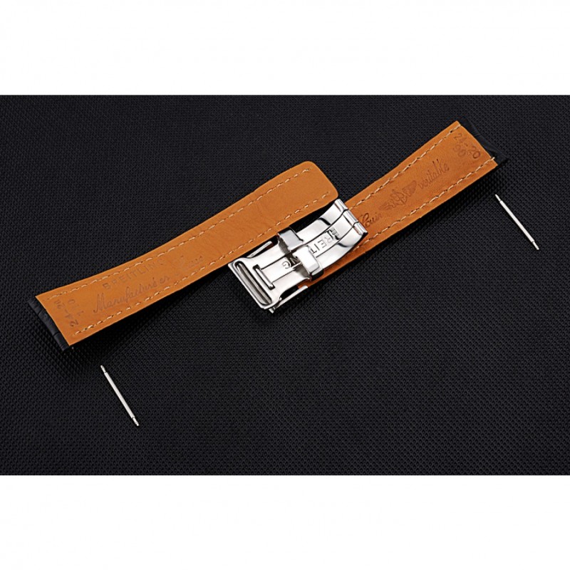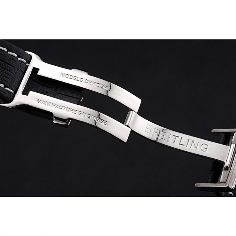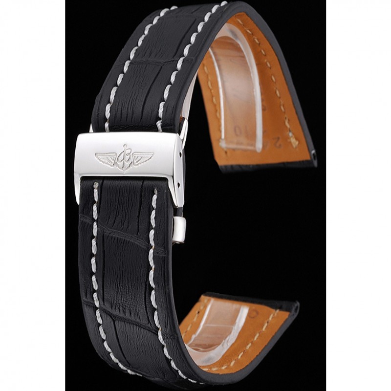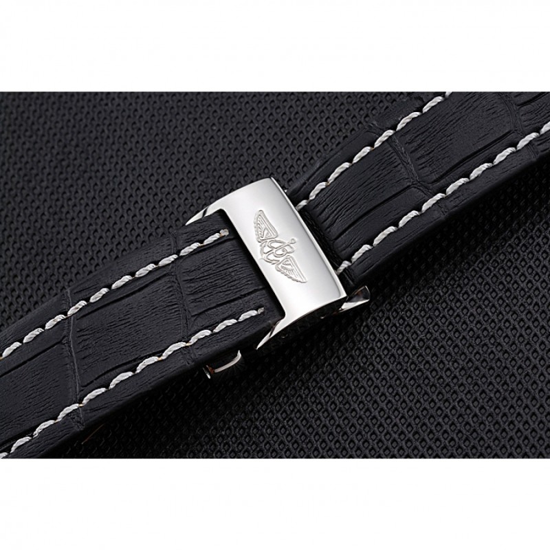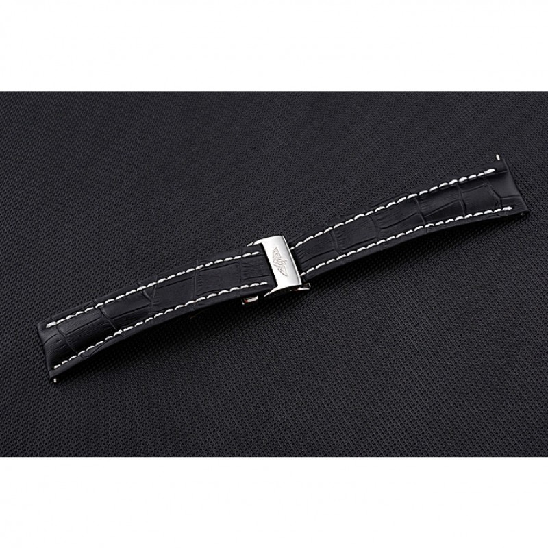 Bracciale: cinturino in pelle di coccodrillo nero calore Cuir vero e proprio in rilievo con il bianco filo di cucitura e Breitling logo inciso in acciaio inox lucido fold-in chiusura