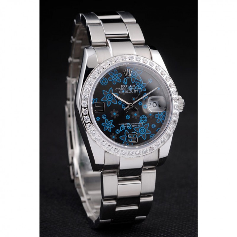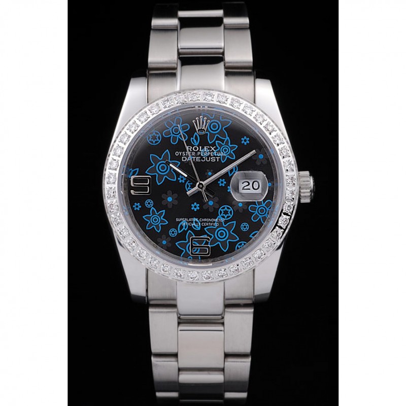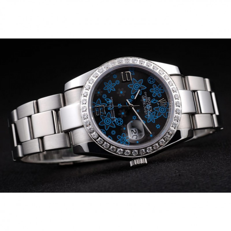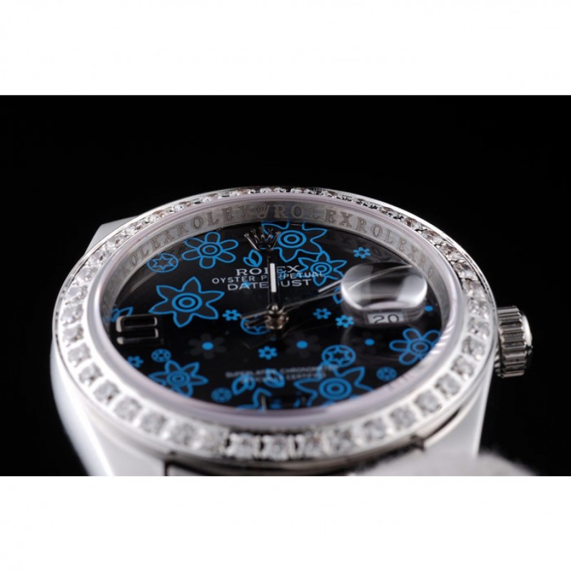 Rolex Datejust in acciaio inox lucido blu scuro Fiori manopola del diamante placcato