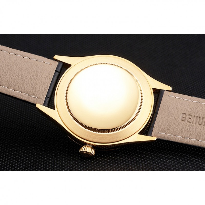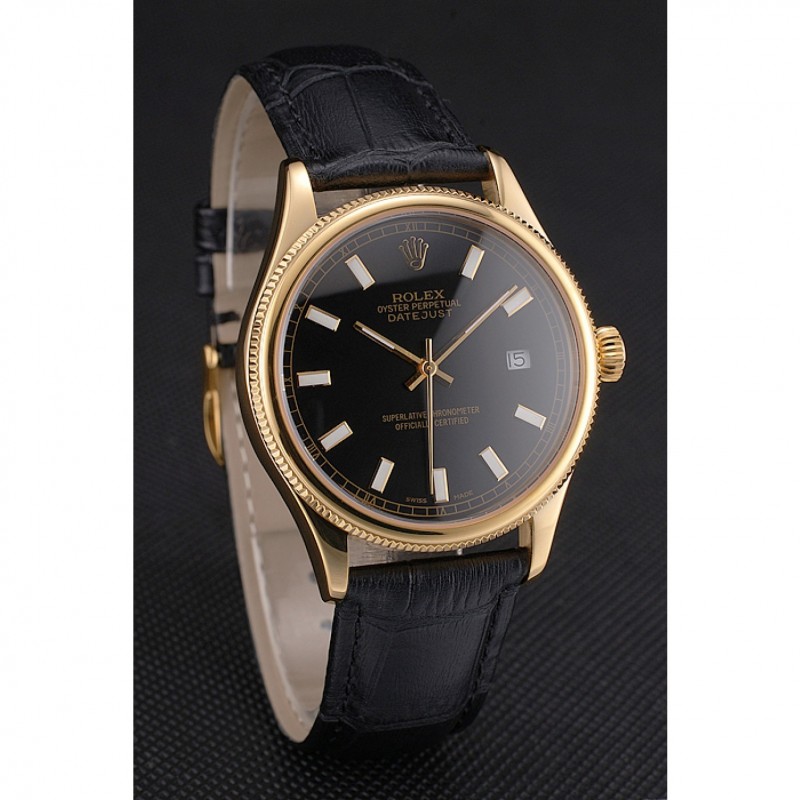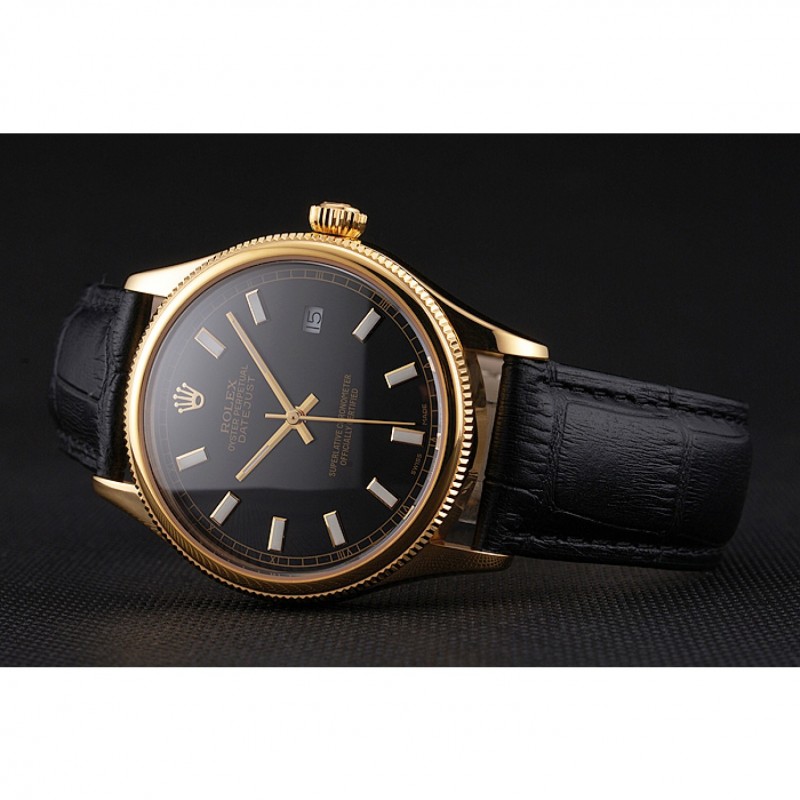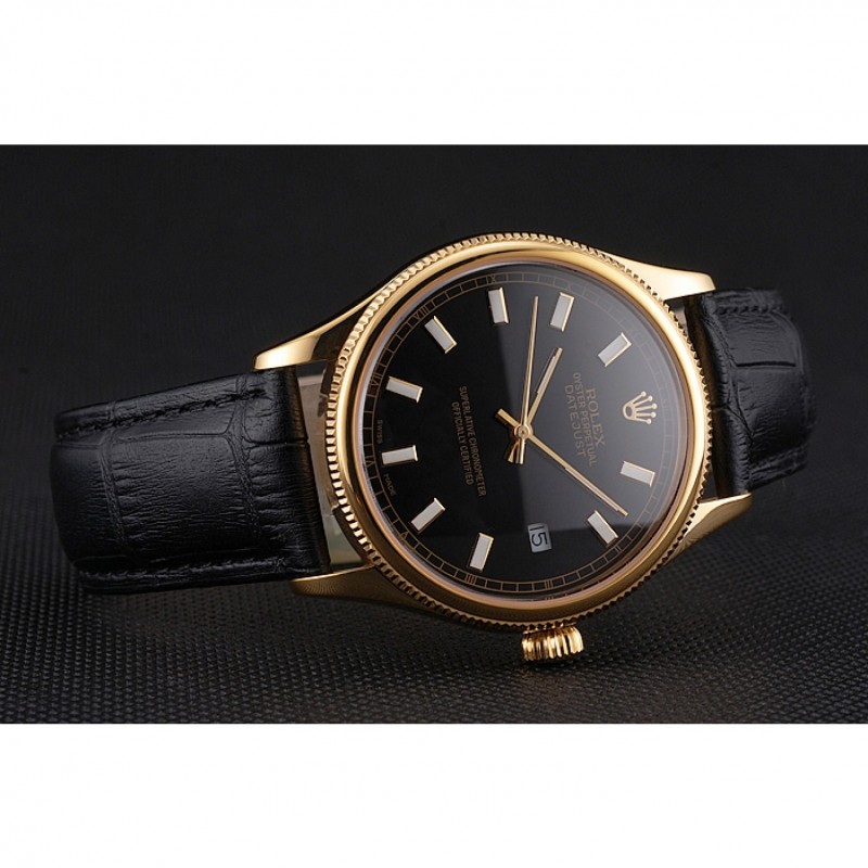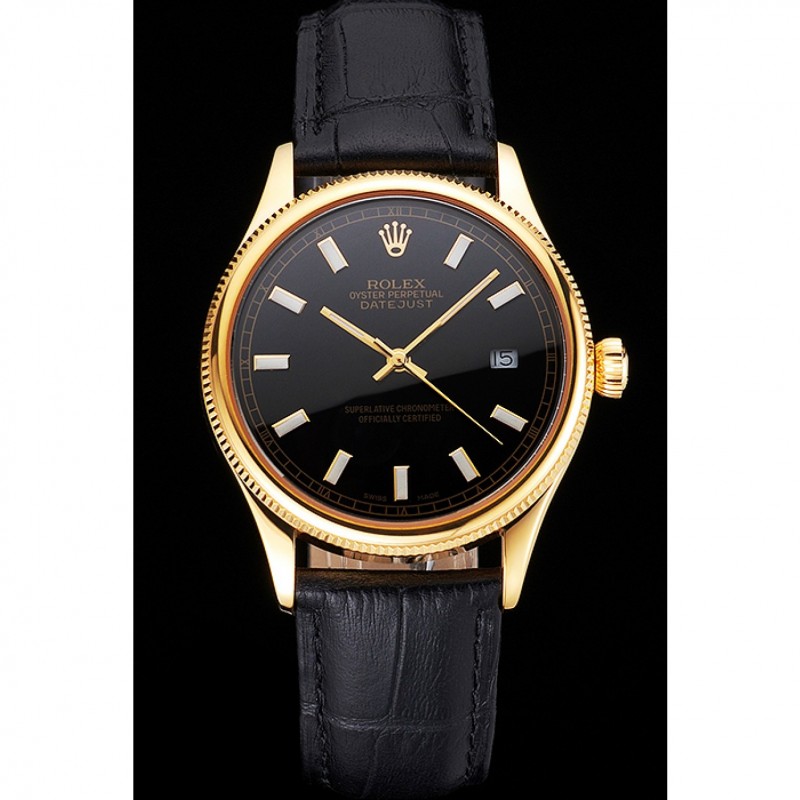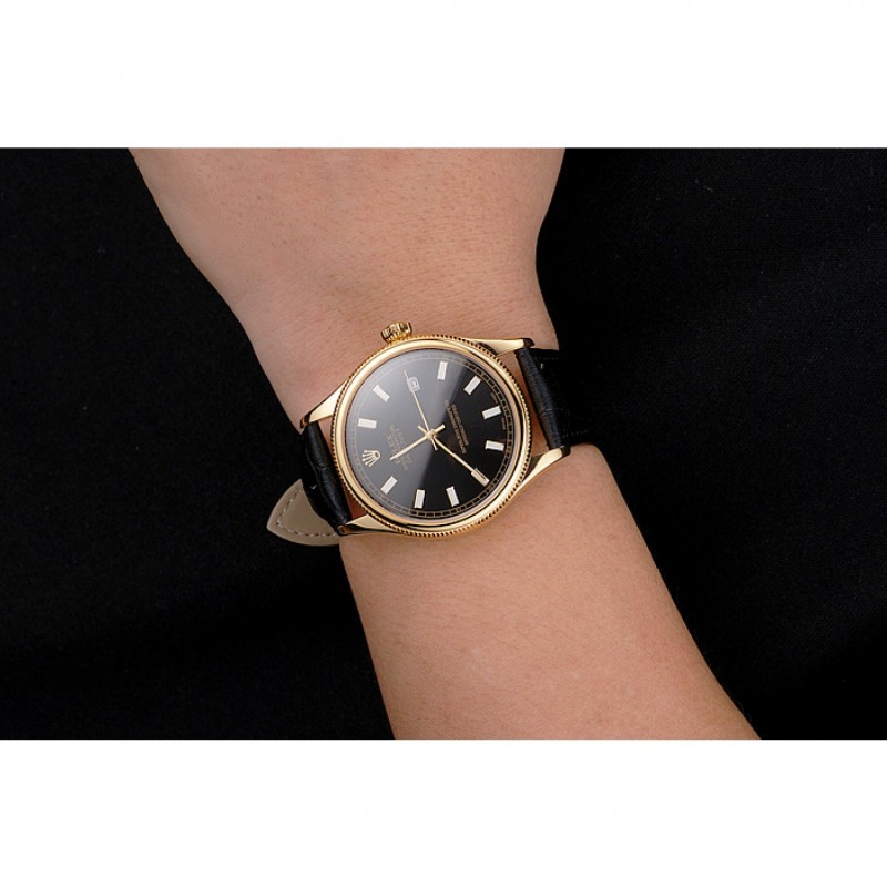 Bracciale:Rolex e il logo di calore impresso cinturino in pelle/coccodrillo nero con Rolex logo intagliato oro giallo 18 carati placcato catenaccio del gancio-fibbia