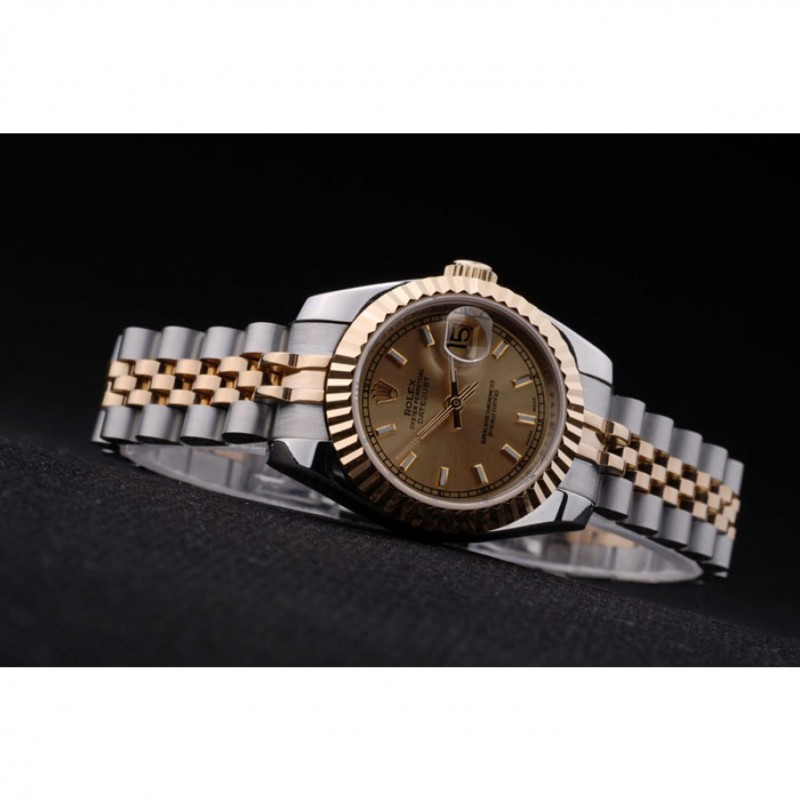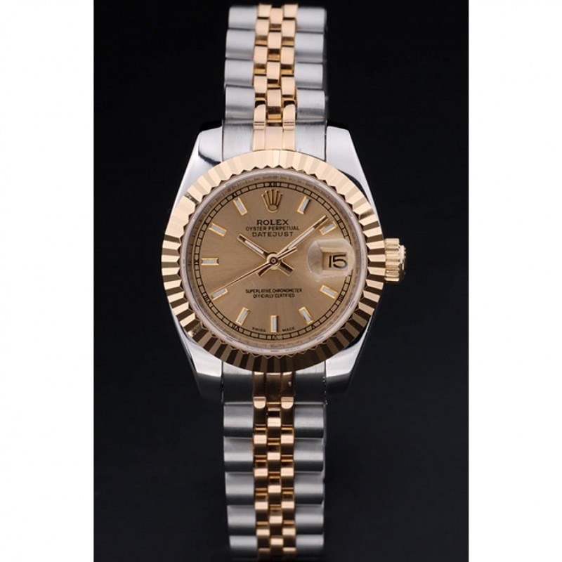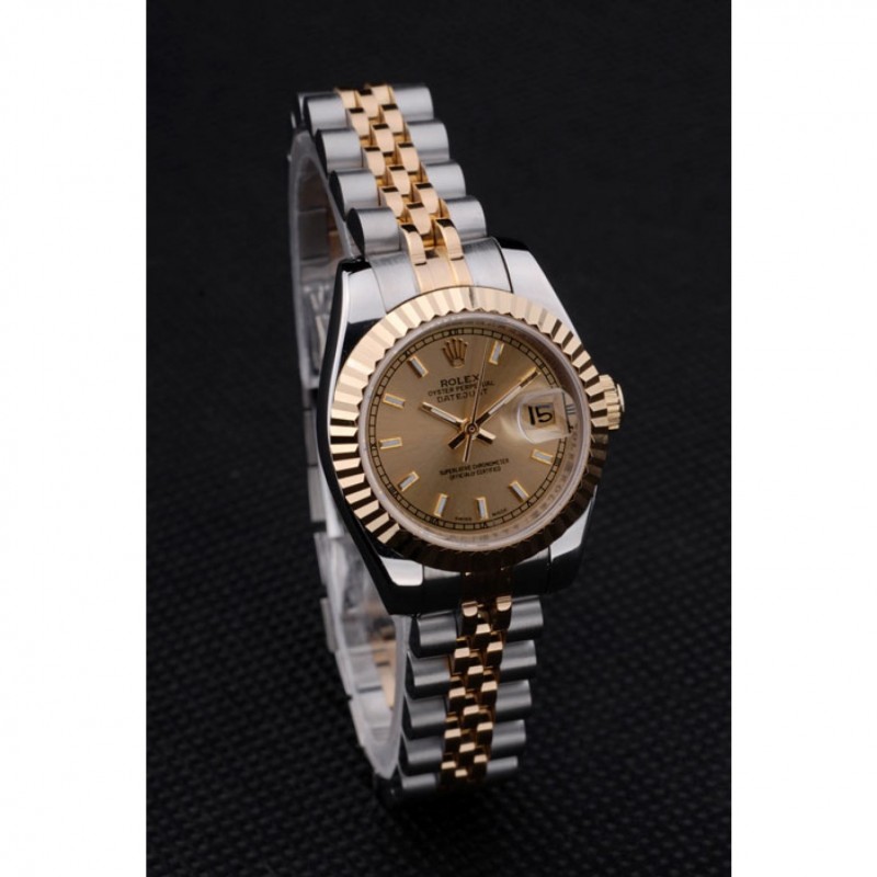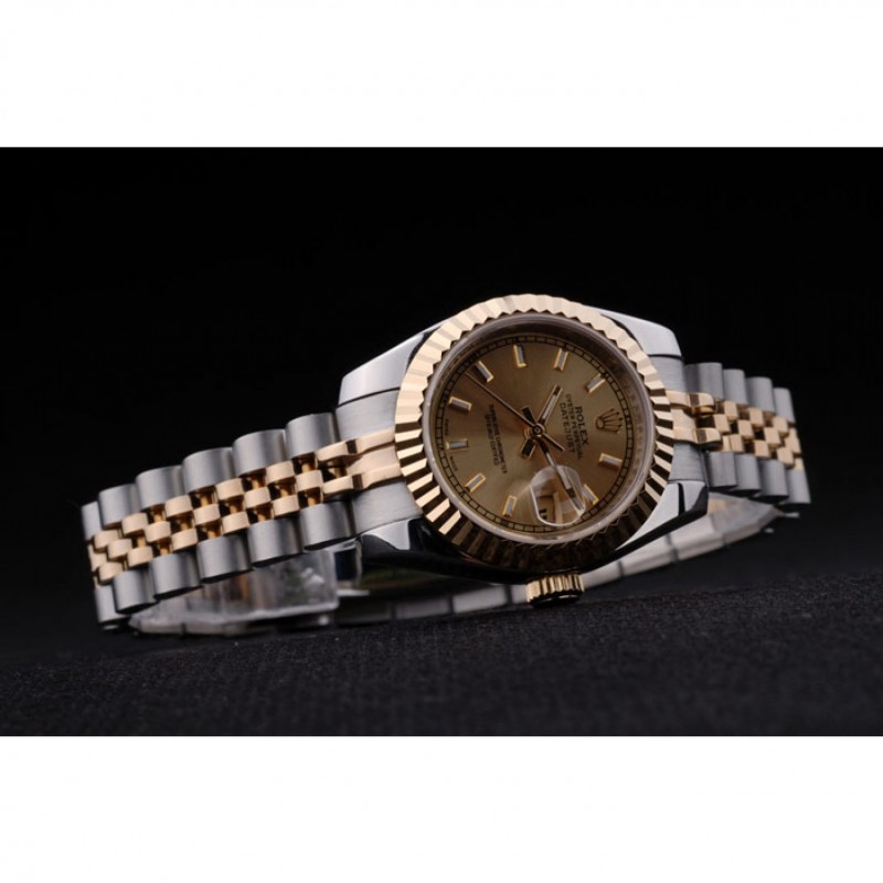 bracciale: Due bracciale a maglie tonica in acciaio inox lucido e oro giallo 18k in acciaio placcato con incisione Rolex chiusura nascosto il logo Rolex