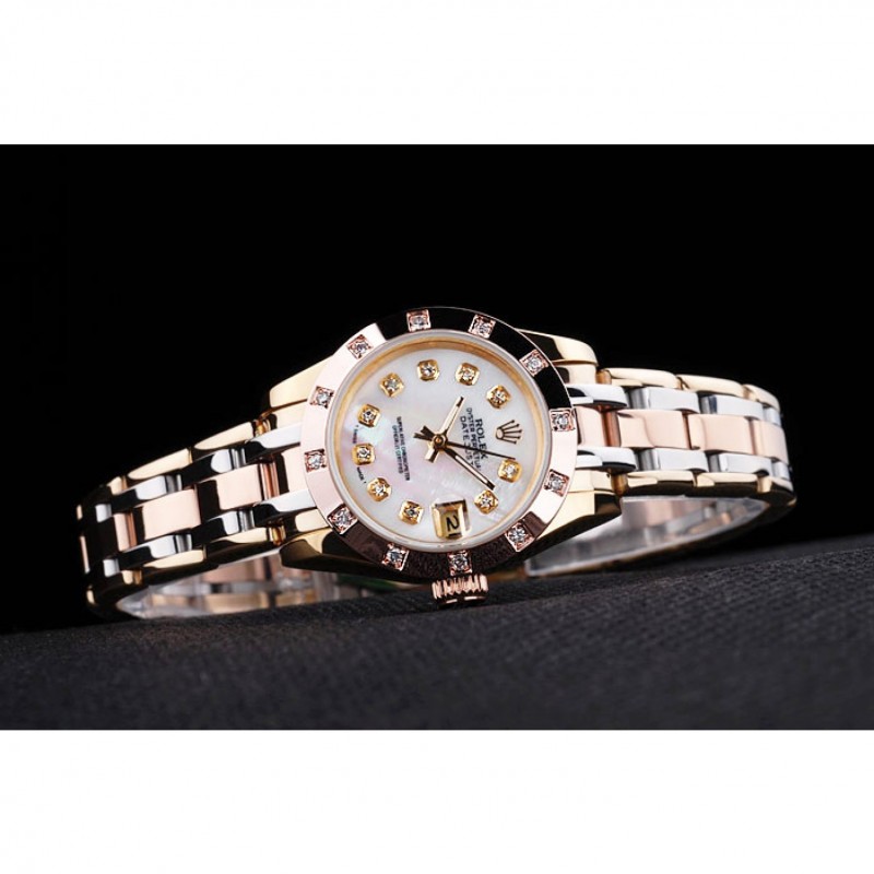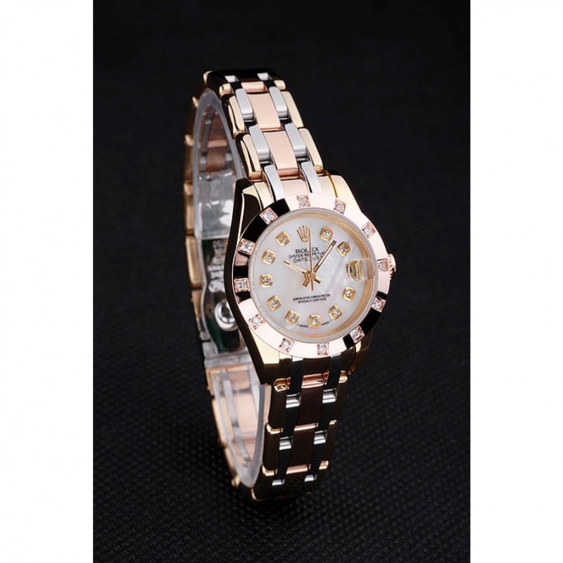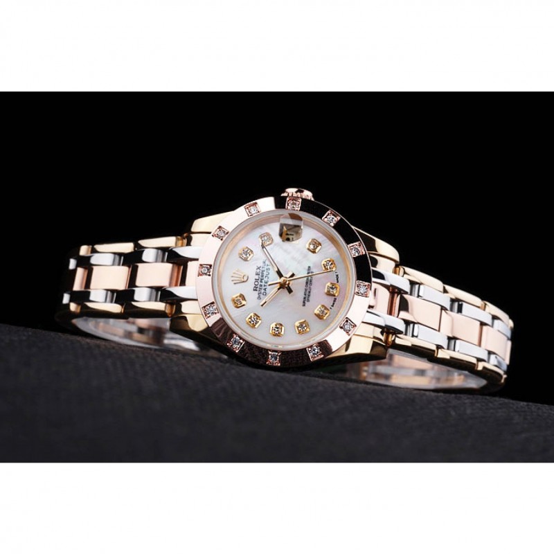 lunetta: placcato 18k rosa- lunetta in acciaio inox con marcatori cristallo-fissato ore placcato 18k oro rosa in acciaio intaglio corona con Rolex logo