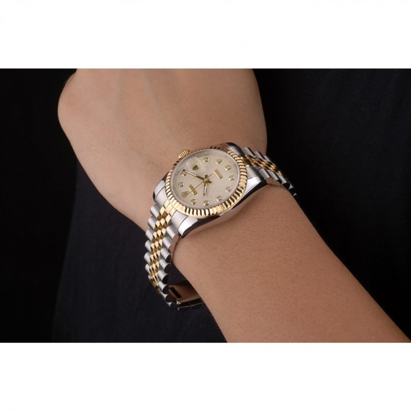 bracciale: Due bracciale a maglie tonica in acciaio inossidabile spazzolato e oro giallo 18k in acciaio placcato con incisione Rolex chiusura nascosto il logo Rolex