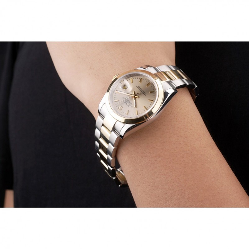 bracciale: Due bracciale tonica in acciaio inossidabile spazzolato acciaio e oro giallo 18k in acciaio placcato con incisione Rolex fold-in chiusura di distribuzione il logo Rolex