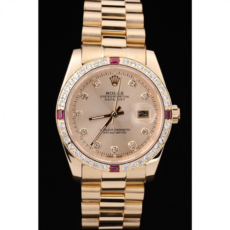 lunetta: Diamond tempestato giallo 18K lunetta in oro con rubini marcatura delle ore 3, 6, 9 e 12