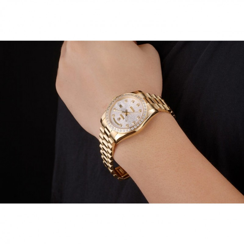 Rolex Day-Date 18k quadrante giallo oro placcato in acciaio inossidabile bianco