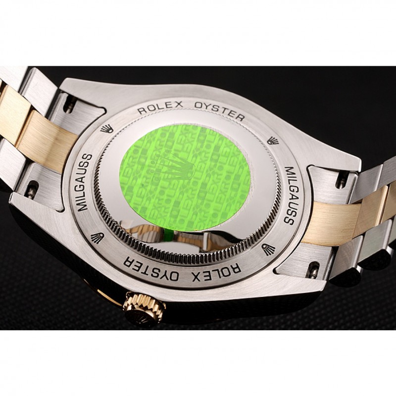 Torna: Rolex Oyster Milgauss inciso inossidabile lucidato in acciaio snap-in posteriore con adesivo autenticità verde Rolex