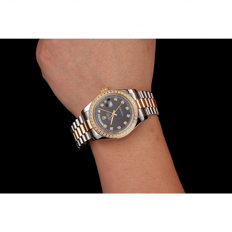 Bracciale: spazzolato acciaio acciaio e placcato oro giallo 18k bracciale in oro giallo placcato Rolex logo intagliato chiusura nascosto