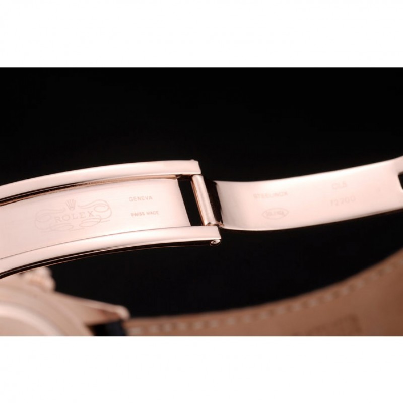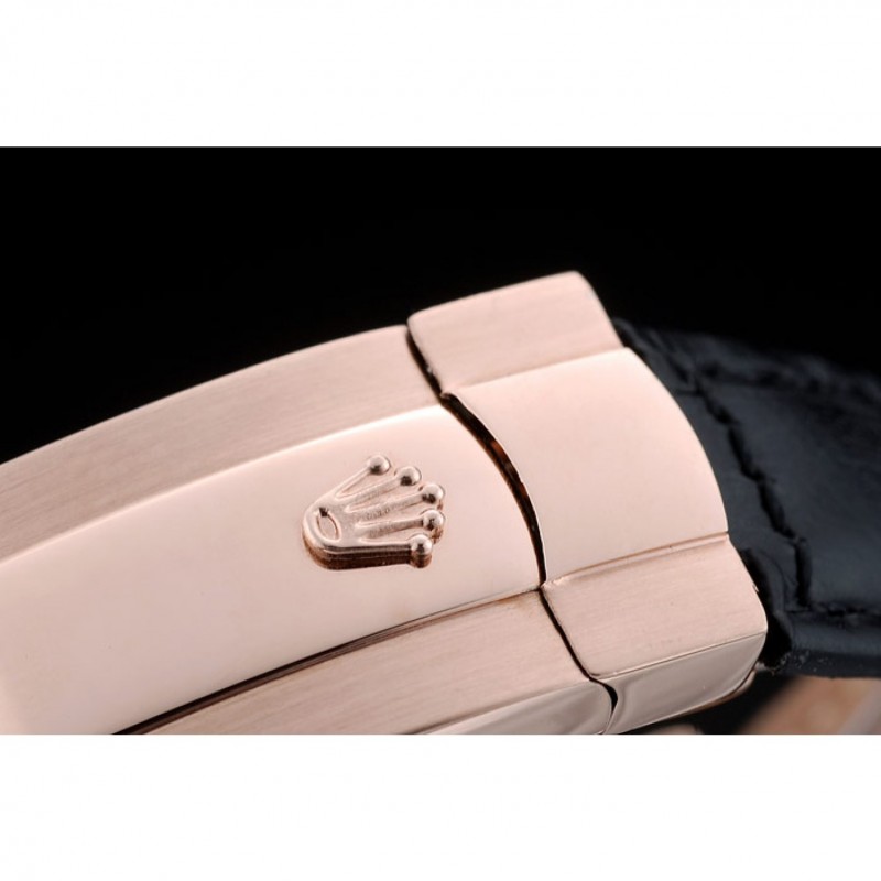 Bracciale : logo e calore in rilievo cinturino in pelle di coccodrillo nera Rolex con 18k oro rosa placcato logo inciso fibbia di distribuzione