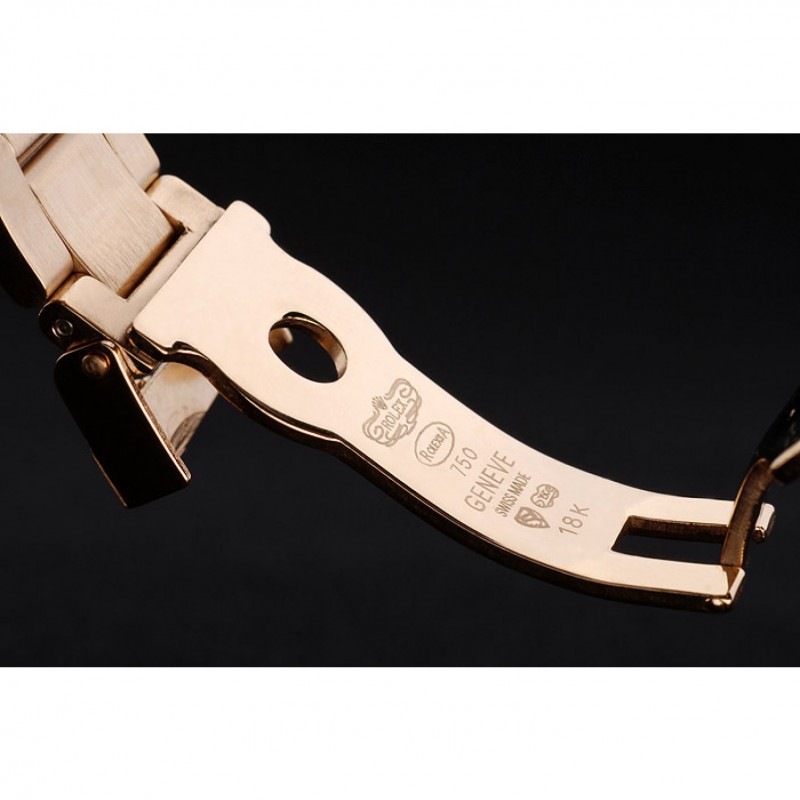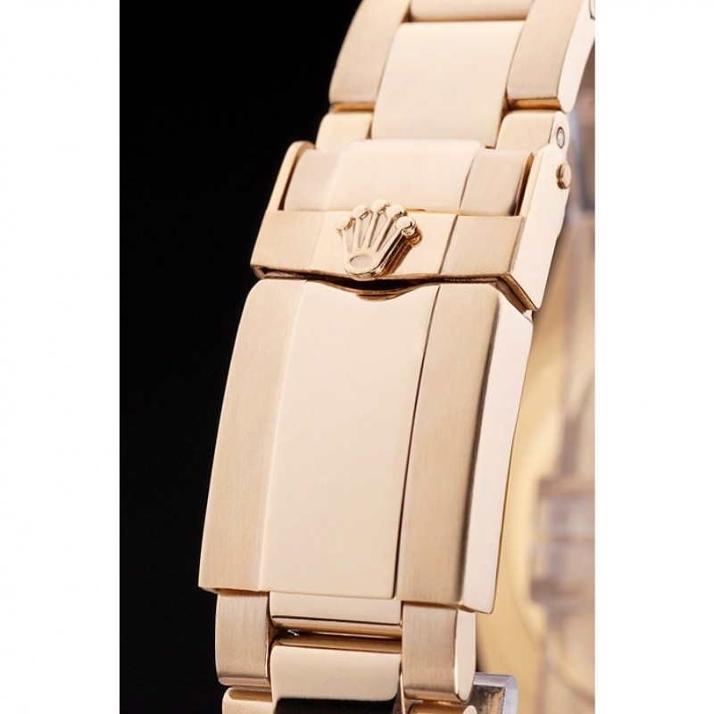 Bracciale: Gold tonica bracciale a maglie in acciaio con fibbia di distribuzione incisione Rolex visualizzazione Rolex logo