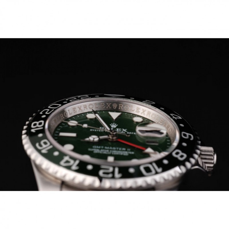 Torna: push in acciaio inox indietro con adesivo verde Rolex e marcature