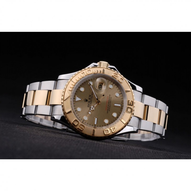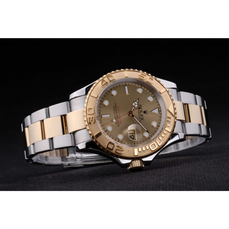 Bracciale: Due tonica spazzolato e bracciale a maglie in acciaio color oro con incisione Rolex piega-in chiusura il logo Rolex