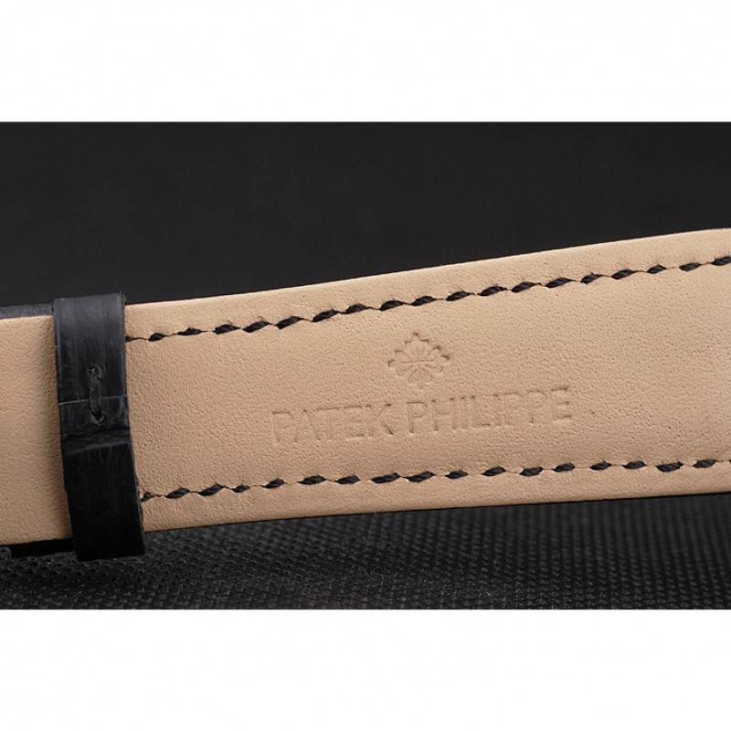 braccialetto: logo e calore in rilievo cinturino in pelle di coccodrillo nero Patek Philippe con Patek Philippe logo intagliato chiusura ionico-plated hook-fibbia
