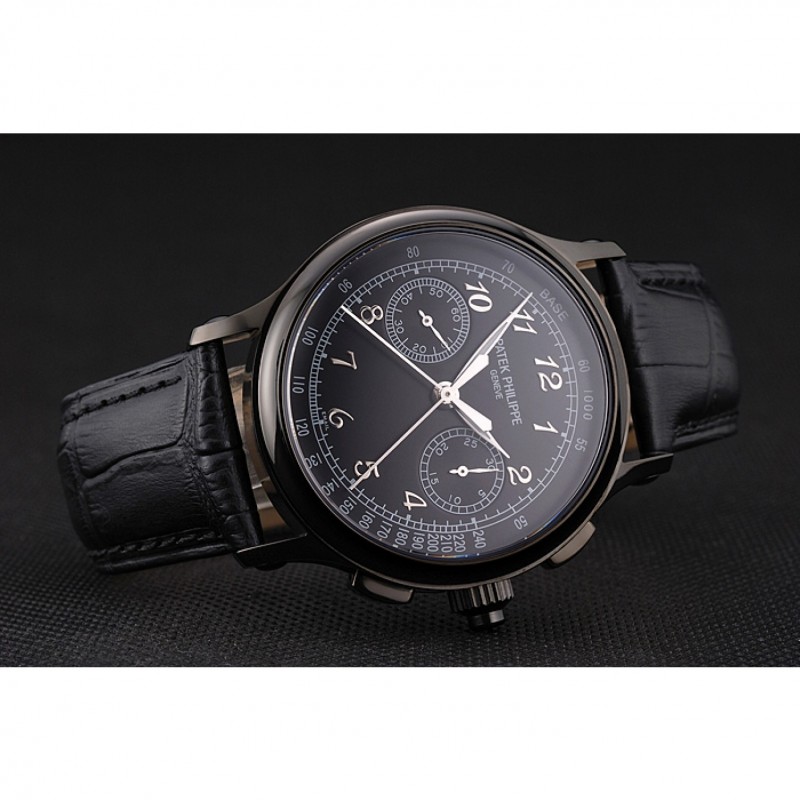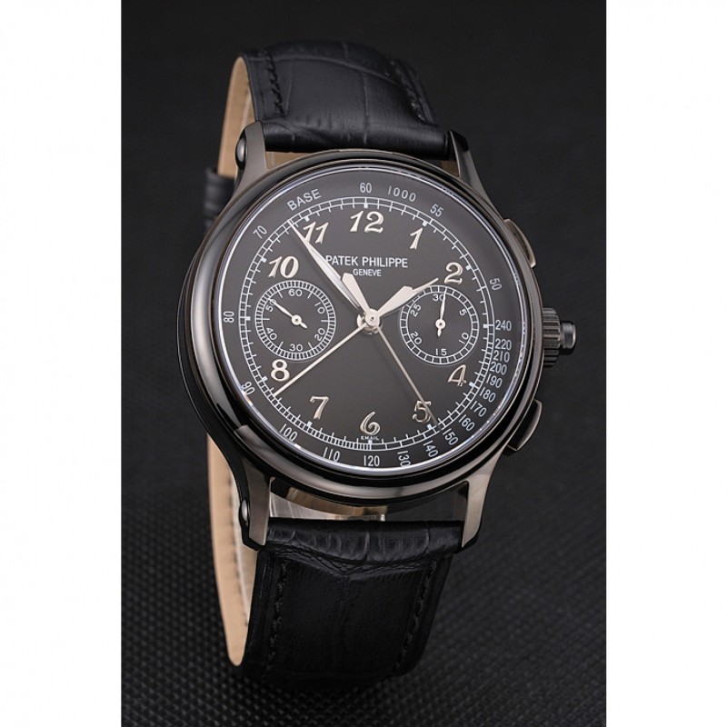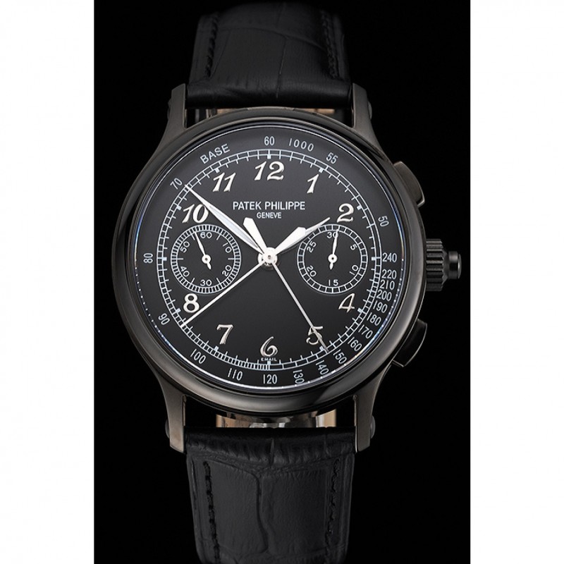 Recensisci per primo “Secondi svizzera Patek Philippe Chronograph Split quadrante nero nero nero di caso cinturino in pelle”