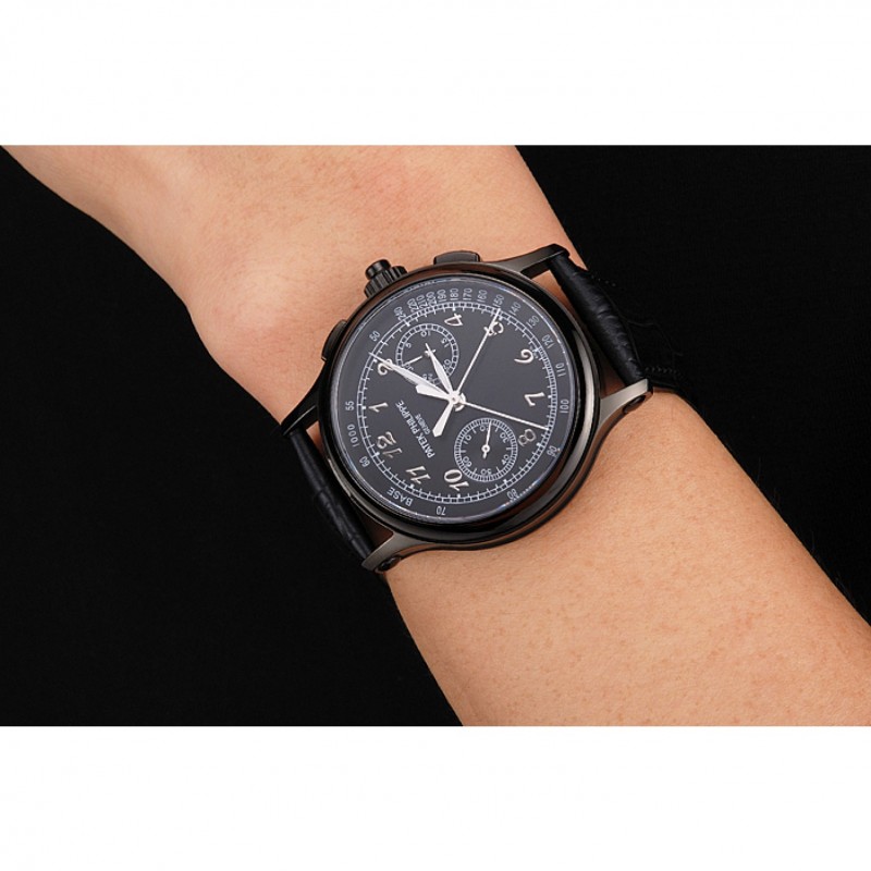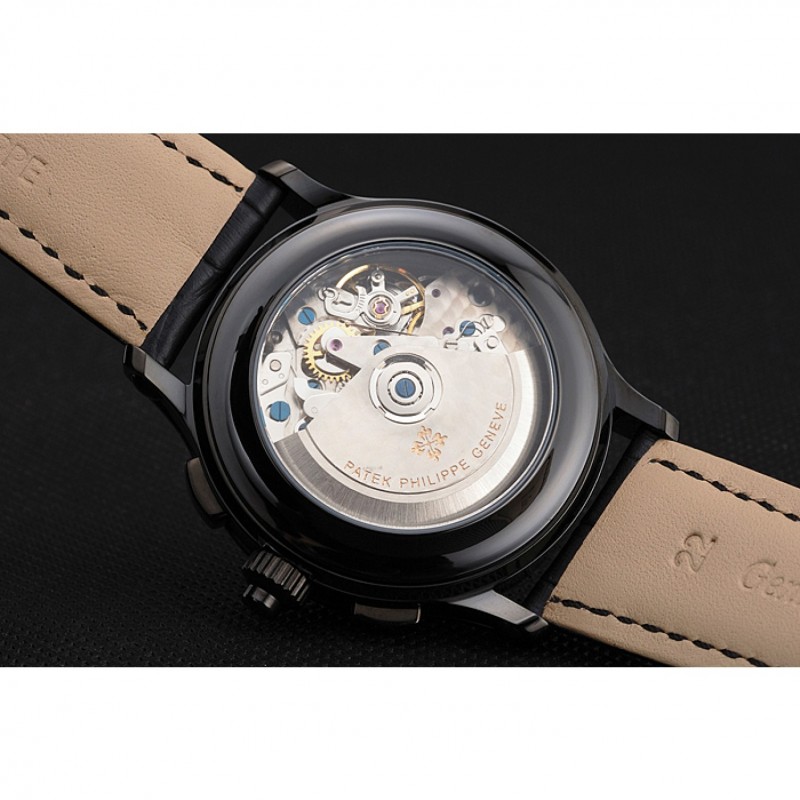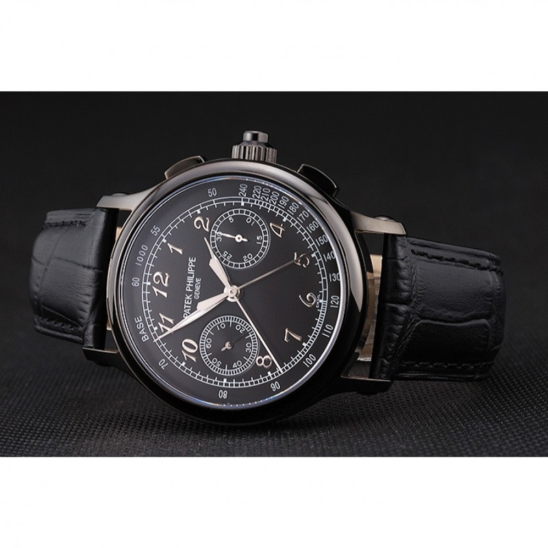 Secondi svizzera Patek Philippe Chronograph Split quadrante nero nero nero di caso cinturino in pelle