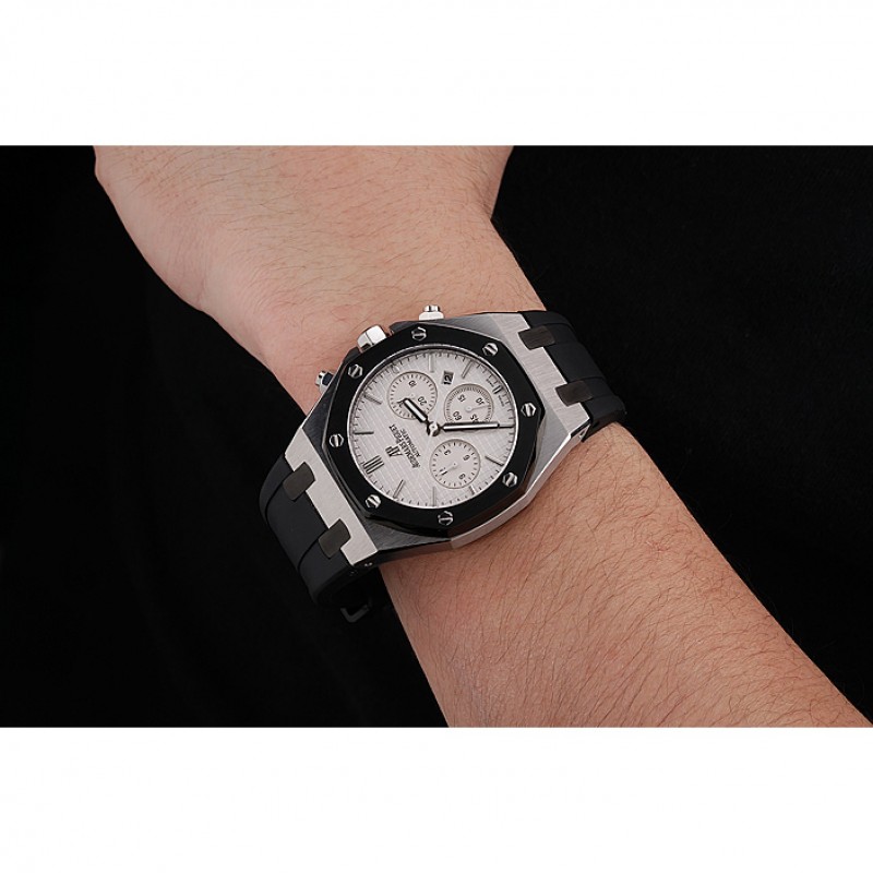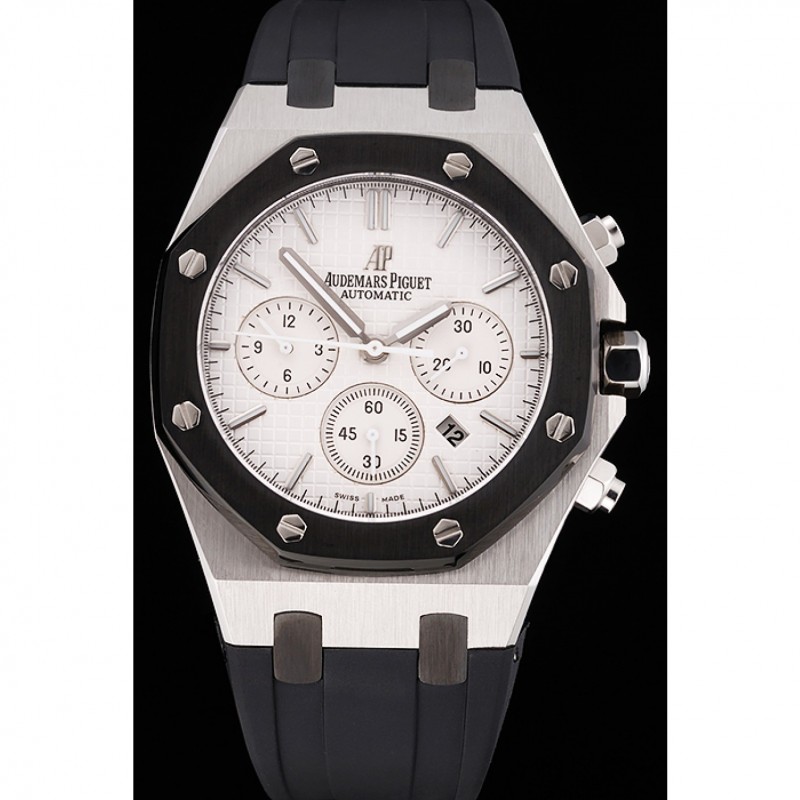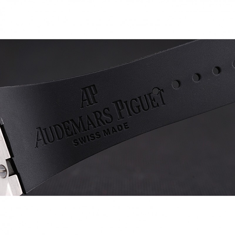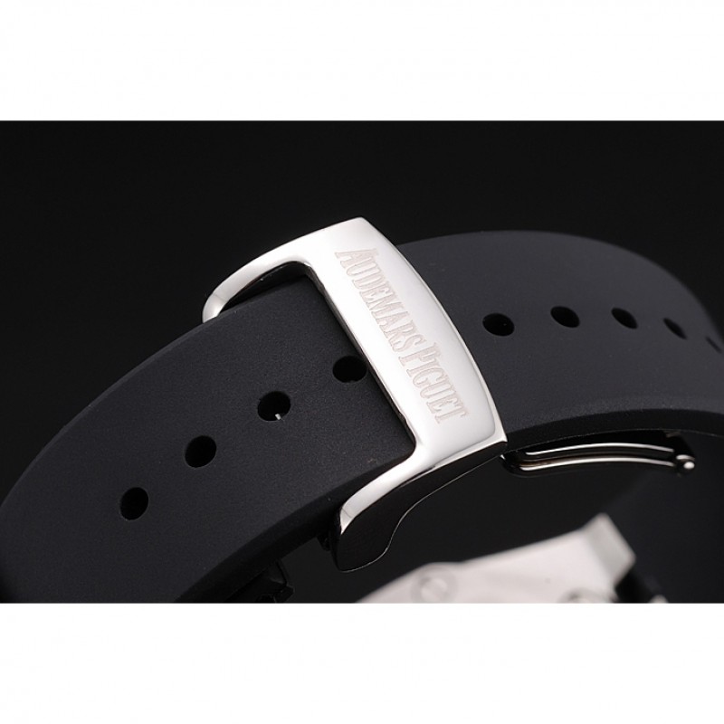 Bracciale: goffrato cinturino in caucciù nero calore Royal Oak Offshore con Audemars Piguet inciso in acciaio inox lucido fold-in gancio chiusura