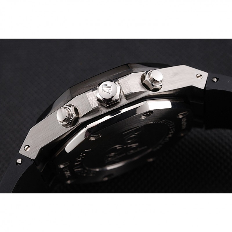 corona: Audemars Piguet logo inciso lucido corona intaglio in acciaio inox con un giro stainles acciaio lucido pulsante corona su entrambi i lati di esso