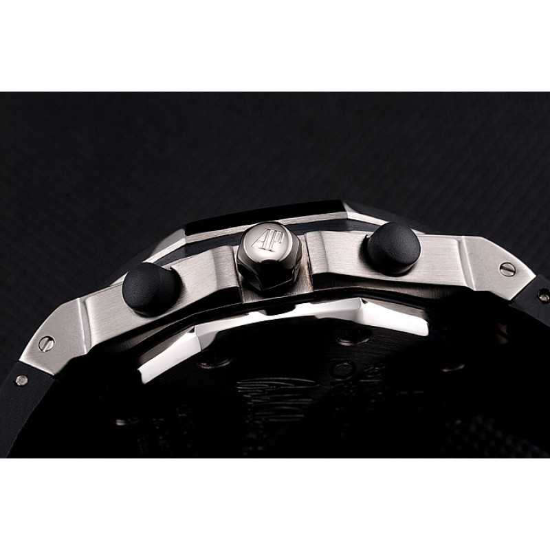 Bracciale: goffrato cinturino in caucciù nero calore Royal Oak Offshore con Audemars Piguet inciso in acciaio inox lucido fold-in gancio chiusura
