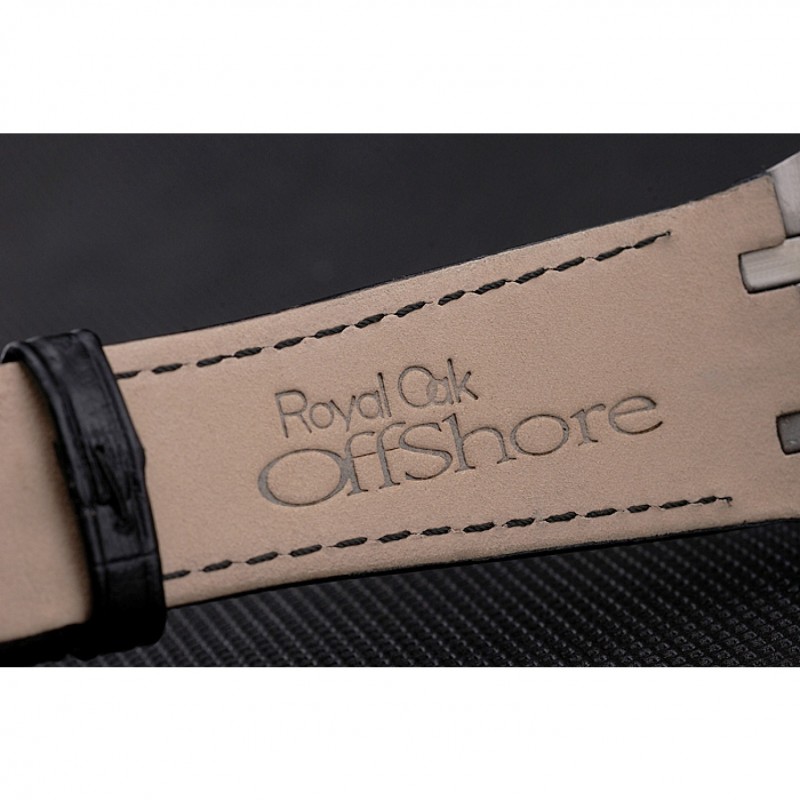 Bracciale: Reale calore Oak Offshore impresso cinturino in pelle di coccodrillo nera con Audemars Piguet inciso catenaccio del gancio in acciaio inox lucidato