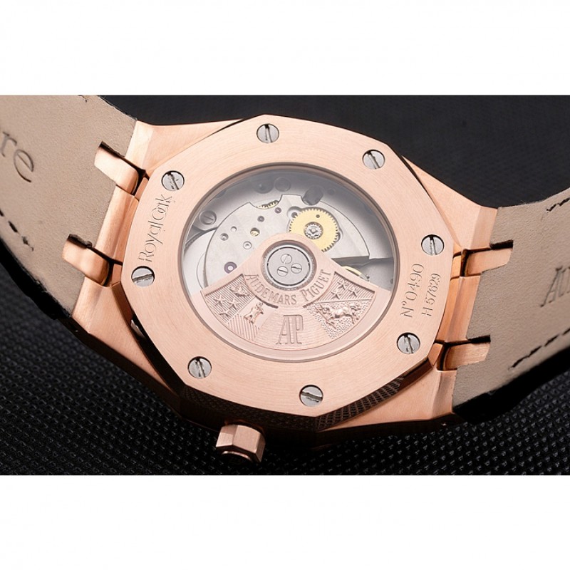Torna: Royal Oak Offshore incisi avvitata 18k oro rosa placcata indietro con la meccanica trasparenti rivelando centro