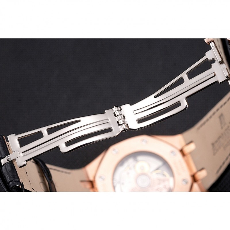 Bracciale: calore Royal Oak Offshore in rilievo cinturino in pelle di coccodrillo nera con Audemars Piguet inciso placcato oro rosa 18 carati in oro gancio chiusura