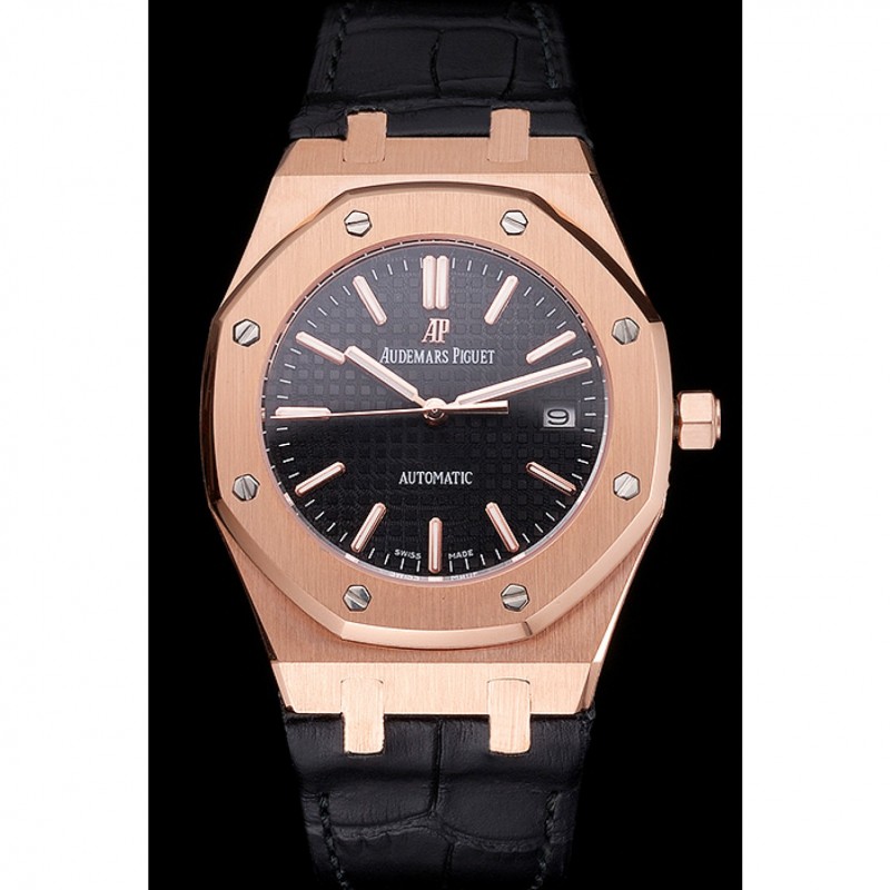 Svizzera Audemars Piguet Royal Oak quadrante nero cassa in oro nero Cinturino in pelle